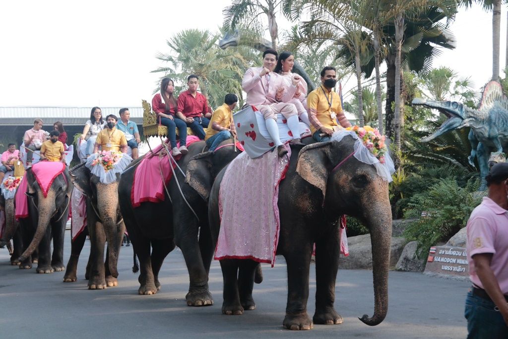 สวนนงนุช จัดงานวันแห่งความรักจดทะเบียนสมรสบนหลังช้างคึกคัก