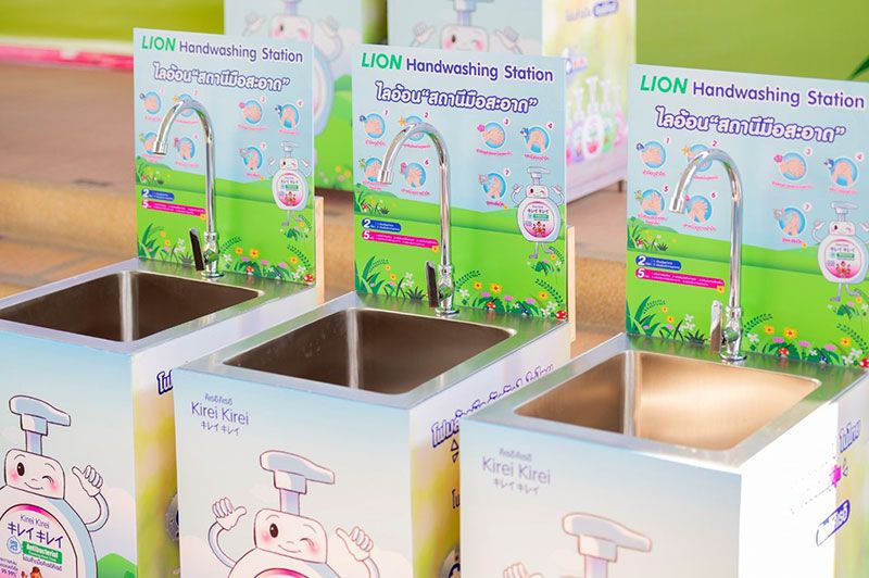 โครงการ LION Handwashing Station “ไลอ้อน สถานีมือสะอาด”มีวัตถุประสงค์เพื่อส่งเสริมให้คนไทยมีสุขอนามัยที่ดีด้วยการล้างมือบ่อยๆ เพื่อป้องกันเชื้อโรคเข้าสู่ร่างกาย โดยการสนับสนุนตู้ล้างมือ พร้อมผลิตภัณฑ์โฟมล้างมือคิเรอิ คิเรอิ อีกทั้งยังให้ความรู้เรื่องการล้างมือที่ถูกวิธี