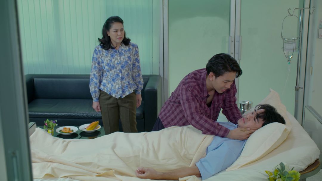 เป็นฉากที่ ปลิว (ลิฟท์) ฟิวส์ขาดเมื่อร่างกายตัวเองต้องมาพิการหนักช่วยเหลือครอบครัวไม่ได้แถมยังสร้างภาระให้ครอบครัวอีกจึงระเบิดอารมณ์เอาหัวโขกลงใส่เตียงนอนพยายามทำร้ายร่างกายตัวเอง ด้าน(พิกุล) จอย ที่ทนเห็นปลิวโหวกเหวกโวยวายไม่ไหวจึงหันไปรื้อมีดปอกผลไม้หวังจบชีวิตลง แต่ ปกรณ์ (เบิ้ล) พยายามเกลี้ยกล่อมให้ทั้งพ่อและแม่อารมณ์เย็นลง ทั้งน้ำตาเพราะไม่อยากให้พ่อแม่ต้องมาทะเลาะกัน พร้อมประคองกอดปลอบสุดชีวิต