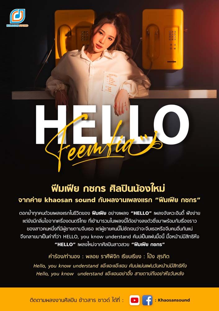 ฟิมเฟีย ค่าย Khaosan Sound ขอทำตามฝัน ส่งซิงเกิ้ลแรกในชีวิต เพลง Hello สร้างสีสันให้วงการเพลงลูกทุ่ง