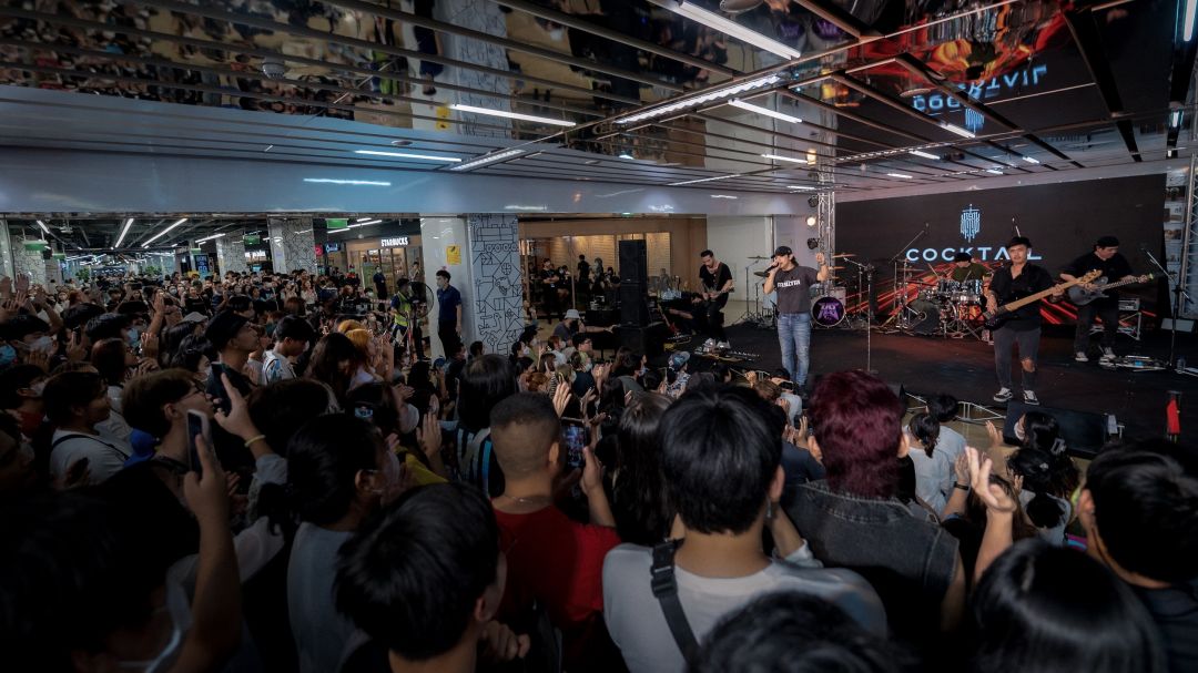 MRT แทบแตก เมื่อวง “COCKTAIL” โผล่ไปเปิดคอนเสิร์ตครั้งแรกกลางสถานีรถไฟฟ้าใต้ดินสวนจตุจักร เมื่อวันอาทิตย์ที่ 9 เมษายน ที่ผ่านมา โดยงานนี้นอกจากจะขนเพลงฮิตมากมายทั้งเก่าและใหม่ไปแสดงให้แฟนเพลงได้สนุกกันอย่างใกล้ชิดแล้ว ยังมีเซอร์ไพรส์เปิดตัวศิลปินเบอร์ล่าสุดของค่าย GeneLab วง “Hard Boy” (ฮาร์ด บอย) 5 หนุ่ม Glam Rock ที่มาพร้อมน้ำเสียงทรงพลังและดนตรีร็อกแอนด์โรล ที่นอกจากจะมาโชว์ฝีไม้ลายมือสุดจัดจ้านแล้ว พวกเขายังเปิดตัวซิงเกิลล่าสุดที่ชื่อ “ค่ำคืนนั้น” ให้แฟนๆได้สัมผัสกับจิตวิญญาณเพลงร็อกของยุคเก่าอีกด้วย เรียกได้ว่าระเบิดความมันส์ สั่นสะเทือนสถานีรถไฟฟ้าใต้ดินกันเลยทีเดียว