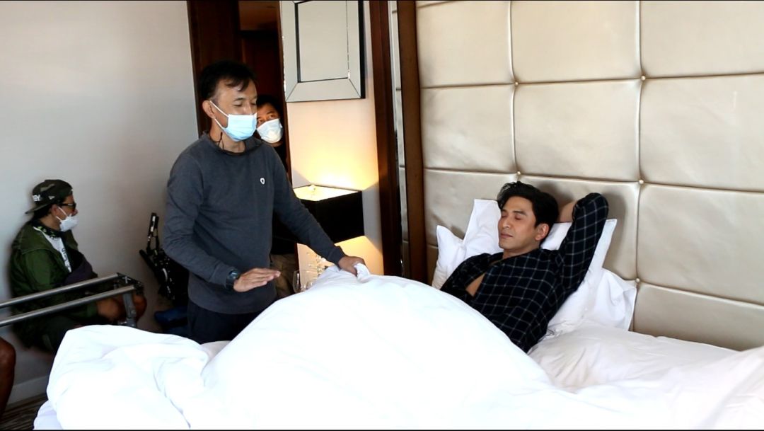 เป็นฉากเปิดตัว วิม (ป๋อ ณัฐวุฒิ)ให้เห็นถึงความเป็นเพลย์บอยที่ใช้ผู้หญิงเปลือง ในฉากวิมกำลังสนุกกับสาวเซ็กซี่ แต่ดันมีโทรศัพท์ของ อรยานี (แอน สิเรียม) ดังขัดจังหวะซะก่อน ถ้าเป็นคนอื่นโทรมาเวลาแบบนี้วิมก็คงตัดสายทิ้ง แต่สายนี้เป็นสายเดียวที่ทำให้วิมหยุดกิจกรรมตรงหน้าได้อย่างทันควัน ฉากนี้สำคัญกับชีวิต “ป๋อ” มาก เพราะต้องเจรจาขออนุญาต “เอ๋ พรทิพย์” (เมียตัวจริง) ก่อนที่จะมาถ่าย เราจะรู้กันดีว่าป๋อหวงตัวสุดๆไม่เคยยอมเล่นเลย แต่เรื่องนี้ไม่เล่นไม่ได้แล้วเพราะ อาปิ่น (ผู้จัด) เอ่ยปากขอร้องเอง ก่อนถ่าย พี่ดุลย์ (ผกก.)ได้คุยรายละเอียดความมากน้อยของการเล่นฉากนี้กับป๋อและนักแสดงร่วม โดยป๋อก็ออกตัวกับน้องเลยว่า “พี่ก็ทำไม่เป็น ไม่เคยเล่นแบบนี้เลย”ต้องให้พี่ดุลย์กำกับชิดติดขอบเตียง บรรยากาศที่เกร็งๆก็เลยผ่อนคลายสนุกสนาน ในห้องถ่ายค่อนข้างแคบมากเรียกว่าแทบจะขี่คอกันทำงาน พี่ดุลย์จัดท่าทางให้ป๋อกับน้อง แล้วค่อยๆไล่ระดับลีลาจากน้อยไปมาก ป๋อช่วยสร้างเสียงหัวเราะให้ทุกคนตลอดเวลาไม่ว่าจะเป็น อาการมือเย็บเฉียบของตัวเอง หรือ บ่นเหนื่อยที่ต้องแขม่วพุงตลอดเวลา ขอเวลา 1 ปีเพื่อ สร้างซิกแพค ก่อนถ่าย แต่ทีมงานรอไม่ได้ ก่อนถ่ายก็มีพึมพำว่า “ขอพักภาพหน้าเมียตัวเองแปบนึง” ท่ามกลางกองเชียร์ทั้งในห้องถ่ายทำ และ หน้ามอร์นิเตอร์เอาใจช่วยป๋อกันทั้งกอง ฉากที่ดูเบื้องหน้าเร้าร้อน แต่เบื้องหลังกลายเป็นละครคอมเมดี้ไปได้ยังไงก็ไม่รู้