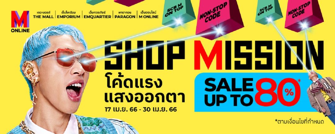 มาร่วมเอ็นจอยกับบรรยากาศการช้อปปิ้ง แบบโปรแรง แสงออกตา กับ “SHOP MISSION”ที่ ห้างสรรพสินค้าเดอะมอลล์ และ เดอะมอลล์ไลฟ์สโตร์ ทุกสาขา, เอ็มโพเรียม, เอ็มควอเทียร์ และ พารากอน ดีพาร์ทเม้นท์สโตร์ระหว่างวันที่ 17 เมษายน –3 พฤษภาคม 2566และ ช่องทางออนไลน์ ตั้งแต่วันที่ 17– 30 เมษายน 2566สั่งซื้อและตรวจสอบเงื่อนไขเพิ่มเติมผ่าน https://monline.com/th/downloadappหรือดูรายละเอียด เพิ่มเติมได้ที่ https://www.facebook.com/MonlineThailand/ และ M Card Application