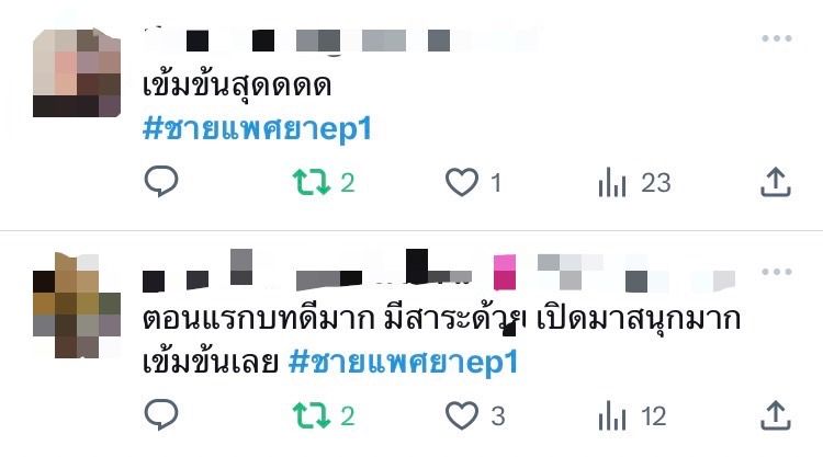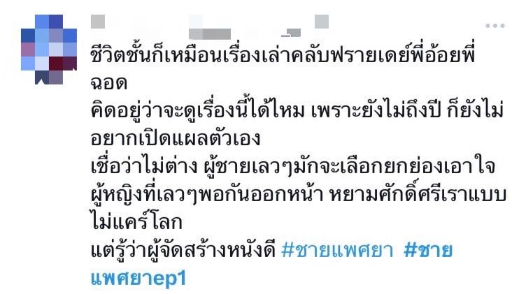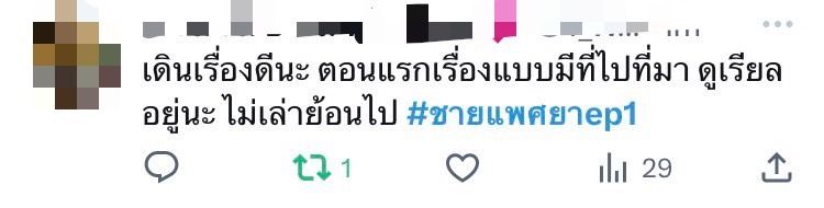 เปิดตัวตอนแรกก็แซ่บจัดจ้านไม่เกรงใจใคร สำหรับ “ชายแพศยา”ที่ตีหัวแรงตั้งแต่เบรคแรกละครที่หลายคนยกให้เป็นมีมวลีเด็ดเต็มโลกโซเชียล เข้มข้น บทแปลกสไตล์ ค่าย ทีวีซีน ที่ดึงรุ่นใหญ่อย่าง ป๋อ ณัฐวุฒิ และ แอน สิเรียมพร้อมด้วยนักแสดงรุ่นเล็ก ไอซ์ ภาณุวัฒน์และ พรีม รณิดามาประชันความความแซ่บ จนแฮชแท็ก #ชายแพศยาEP1ขึ้นติดเทรนด์ทวิตเตอร์