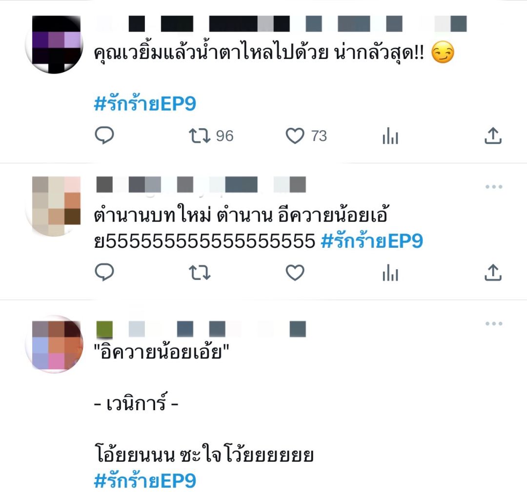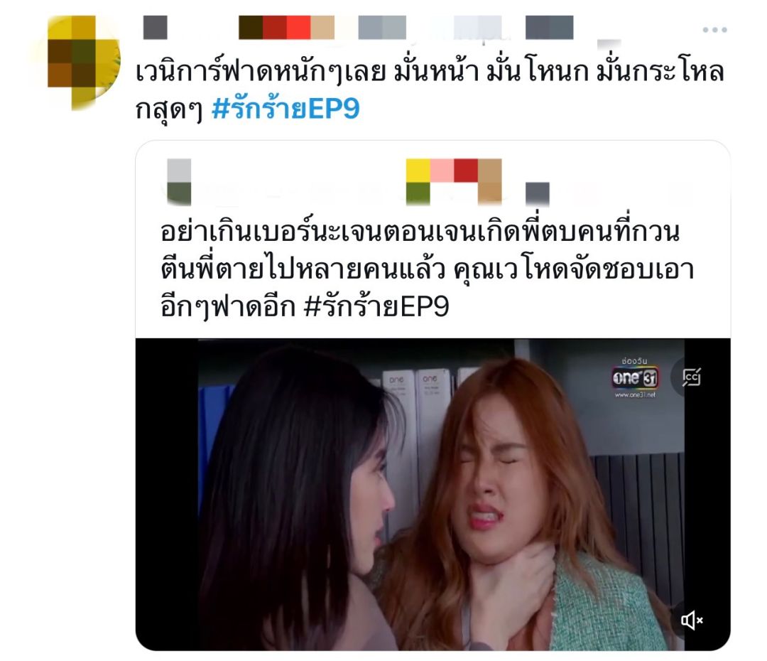 กว่าจะนิ่ง…ก็ต้องกลิ้งมาก่อน ประโยคท่อนนี้ คือที่สุด สำหรับ เมียหลวงใจพัง อย่าง “เวนิการ์” ในละคร ดราม่าฟอร์มใหญ่ “รัก/ร้าย” ทาง ช่องวัน31 ที่ได้ นางเอกตัวแม่ “ใหม่-ดาวิกา โฮร์เน่” มาสิงร่างในบทนี้ เมื่อคืนนี้ (อีพี9) กระแสโซเชี่ยลร้อนฉ่าทุกช่องทาง เพราะสาวใหม่ จัดใหญ่ไม่เกรงใจใคร ปล่อยวลีเด็ด เผ็ดสะเทือนโซเชี่ยล ตอกหน้า สาวปากแจ๋ว นิสัยเจ๋อ อย่าง “นาน่า-ศวรรยา ไพศาลพยัคฆ์” ในบท “เจน” เงิบไปหลายดอก เรียกว่า ดับมั่น เมียน้อยวัยใส กันแบบตาต่อตา ฟันต่อฟัน ด้วยวลีสุดจี๊ด ที่ทำเอาคันยุบยิบไปทั้งตัว ไม่ว่าจะเป็น อิเด็กเปรต ,ตรรกะอุบาทว์ ,ควายน้อย ,ติดXXX ฯลฯ แต่เหนือคำด่าสุดเจ็บแสบ ก็ต้องยกให้อินเนอร์สุดจึ้ง ที่คู่นี้ สาดใส่กันได้ร้อนแรง โดยเฉพาะ ใหม่ที่ซัดใส่นาน่าได้ท็อปฟอร์ม เรียกว่า น้ำเสียง สีหน้า แววตา อยู่ในโหมดโหดตัวแม่ ด้านสาวนาน่า แม้จะเป็นรอง ในเชิงปะทะฝีปาก แต่เลเวล ความกวนประสาท ยืนหนึ่งขั้นสุด ทั้งสีหน้า น้ำเสียง กินขาดไม่น้อย จนชาวโซเชี่ยลเหมารถทัวร์มารวมตัวกัน โดยมิได้นัดหมาย บอกเลยว่า…คู่นี้ระดับความแรง เลเวลความอิน กินกันไม่ลงจริงๆ บทดี ฝีมือเด่น เบอร์นี้ เรียกว่า “มีม” บทใหม่ ได้ก่อกำเนิดขึ้นแล้ว