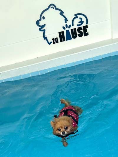ที่ zuHause โรงแรมสำหรับสุนัขพันธุ์เล็กในย่านพระราม 2 ที่เกิดขึ้นจากความรักสุนัขของคุณเอก ซึ่งต้องการให้สุนัขที่เข้ามาพัก ได้รับความรัก การดูแลเอาใจใส่และความสะดวกสบายเหมือนอยู่บ้านตัวเองดังชื่อของโรงแรมที่เป็นภาษาเยอรมันแปลว่า อยู่บ้านก็มีบริการพิเศษ สระว่ายน้ำสำหรับสุนัขขนาด 3×5 เมตรให้น้องหมาได้เพลิดเพลินพร้อมเสื้อชูชีพให้บริการและมีพี่เลี้ยงคอยดูแล โดยไม่คิดค่าใช้จ่ายเพิ่มเติม หากเจ้าของจะลงว่ายน้ำเล่นกับน้องหมา ก็มีห้องอาบน้ำเปลี่ยนเสื้อผ้าให้ หลังว่ายน้ำมีบริการอาบน้ำเป่าขนให้น้องหมาให้เรียบร้อยอีกด้วย