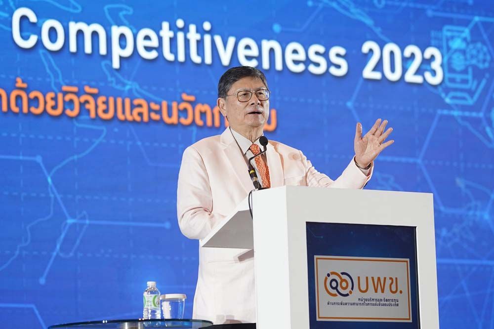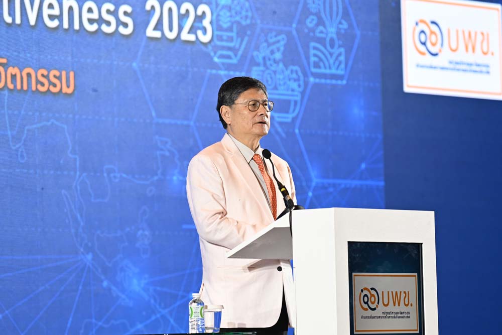 ด้านนายเกรียงไกร เธียรนุกุล ประธานสภาอุตสาหกรรมแห่งประเทศไทย กล่าวว่า การเปลี่ยนแปลงของโลกภายนอกทั้งเรื่องดิจิทัลทรานสฟอร์เมชั่น สงครามเทคโนโลยี ภูมิรัฐศาสตร์ การเปลี่ยนแปลงสภาพภูมิอากาศ สิ่งเหล่านี้เป็นเรื่องที่กำลังเกิดขึ้นและเป็นความท้าทายของภาคอุตสาหกรรมระดับโลกที่มาจากภายนอกประเทศ ส่วนความท้าทายที่มาจากภายในประเทศเองคือ การเข้าสู่สังคมสูงวัย และการที่ประเทศไทยอยู่ในกับดักรายได้ปานกลางมาเป็นเวลานาน ซึ่งตัวเลขปี 2565 เป็นปีแรกที่อัตราการเกิดต่ำกว่าอัตราผู้เสียชีวิต เรียกได้ว่าประเทศไทยย่างเข้าสู่สังคมผู้สูงอายุอย่างสมบูรณ์ ซึ่งเป็นความท้าทาย เพราะสิ่งนี้ทำให้ขีดความสามารถในการแข่งขันของประเทศกำลังลดลง ประกอบกับในปี 2565 ไอเอ็มดีได้จัดอันดับขีดความสามารถในการแข่งขันของไทยลดลง 5 อันดับ จากอันดับที่ 28 ( ปี2564 ) เป็นอันดับที่ 33 ( ปี 2565 ) และนี่คือสิ่งที่ได้ชี้ชัดว่าขีดความสามารถในการแข่งขันของไทยควรที่จะรีบพัฒนา ซึ่งต้องชื่นชมกระทรวงอว.ที่ได้มีการพัฒนาและทลายกำแพงที่เคยขวางกั้นระหว่างภาครัฐและเอกชน ทำให้เกิดการทำงานร่วมกัน