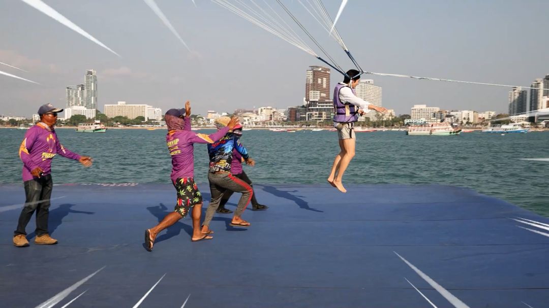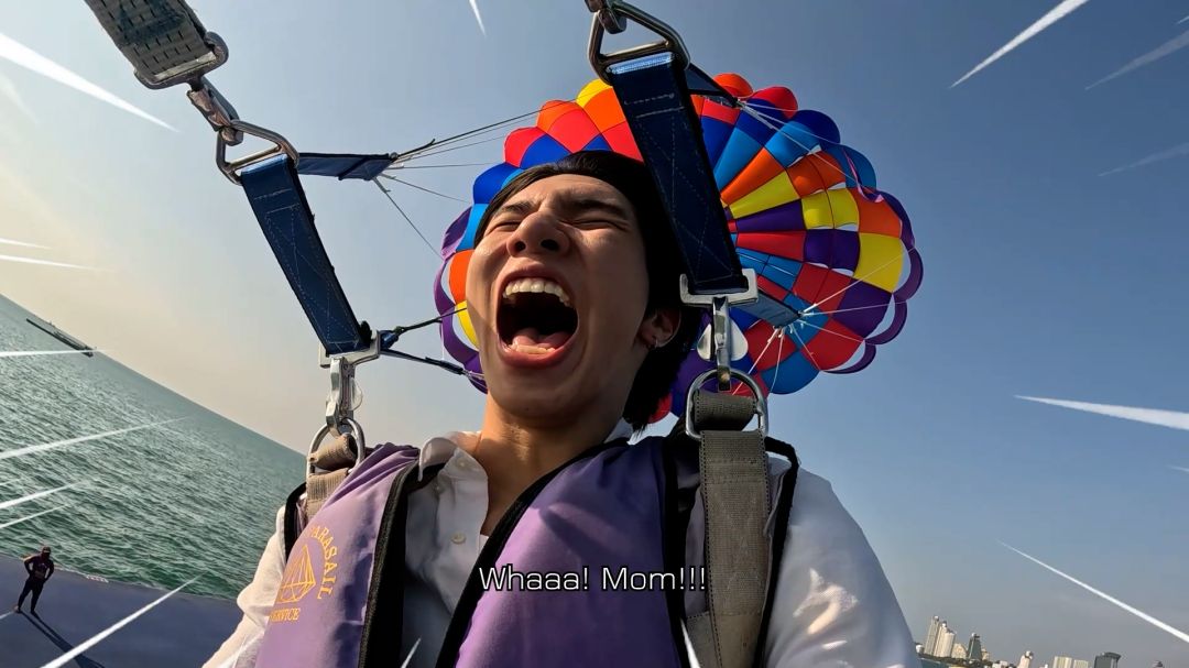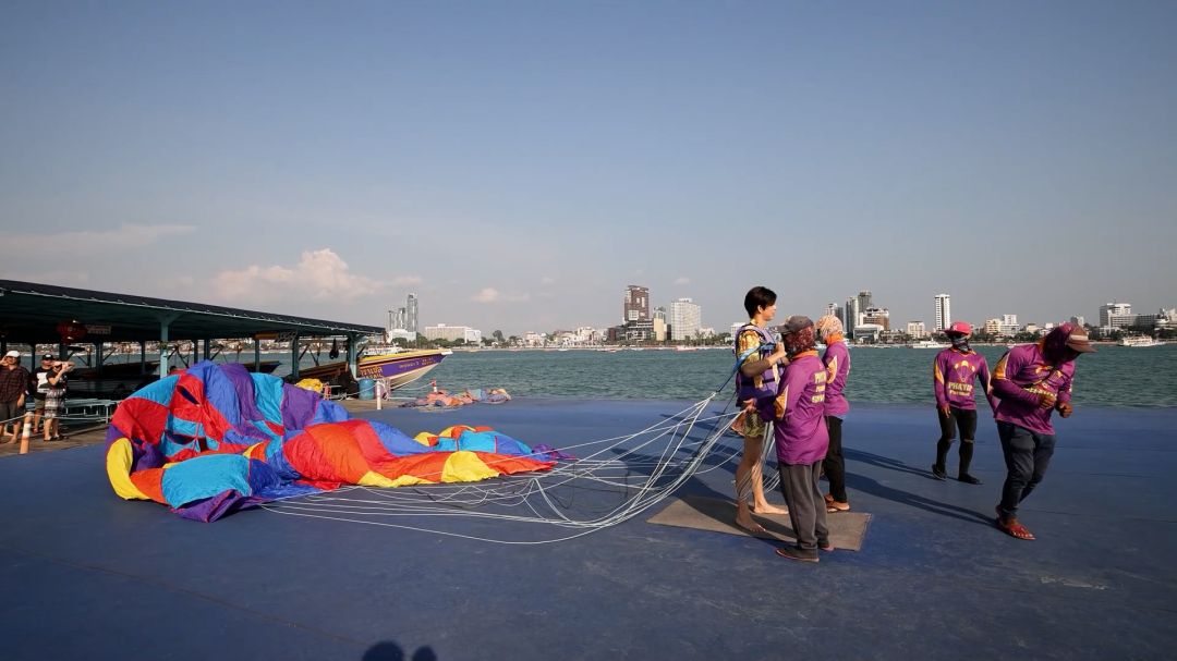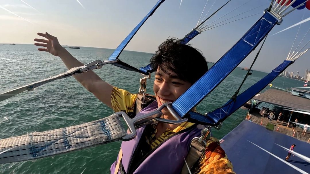 อย่างไรก็ดี การเล่น Parasailing นี้ถือเป็นครั้งแรกในชีวิตของทั้งคู่ หนุ่มแฟรงค์ “ยกให้เป็นการเปิดโลกครั้งใหม่ของตัวเอง ส่วนตัวไม่ค่อยกลัว จะชิลล์ๆ มากกว่า แม้ว่าจะกลัวความสูง แต่พื้นข้างล่างมันเป็นน้ำ เลยไม่ค่อยกลัวเท่าไร” ขณะที่หล่งลี เผยว่า “จะปฏิเสธไม่เล่นอยู่แล้ว ส่วนตัวไม่ค่อยกล้าเล่นอะไรสูงๆ แต่คิดอีกแง่คือ ถ้ามาแล้วไม่ทำมันจะเสียโอกาส…”