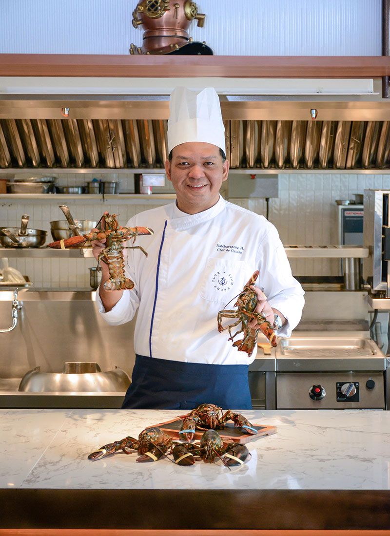 เพลิดเพลินกับเมนูล็อบสเตอร์ ที่เชฟนุและทีมพ่อครัวของสยามยอชท์คลับ บรรจงปรุงอาหารแต่ละจานอย่างพิถีพิถันเพื่อคงความหวานฉ่ำอย่างธรรมชาติและเนื้อสัมผัสที่หลากหลายของล็อบสเตอร์ อาทิ Lobster Capellini (พาสต้าเส้นแองเจิลแฮร์กับล็อบสเตอร์) 898 บาท Lobster Salad (สลัดล็อบสเตอร์) 548 บาท และเมนูเชฟซิกเนเจอร์ Trio of Lobster (เกี๊ยวล็อบสเตอร์ ล็อบสเตอร์โรล ล็อบสเตอร์ย่างถ่าน) 2298 บาท