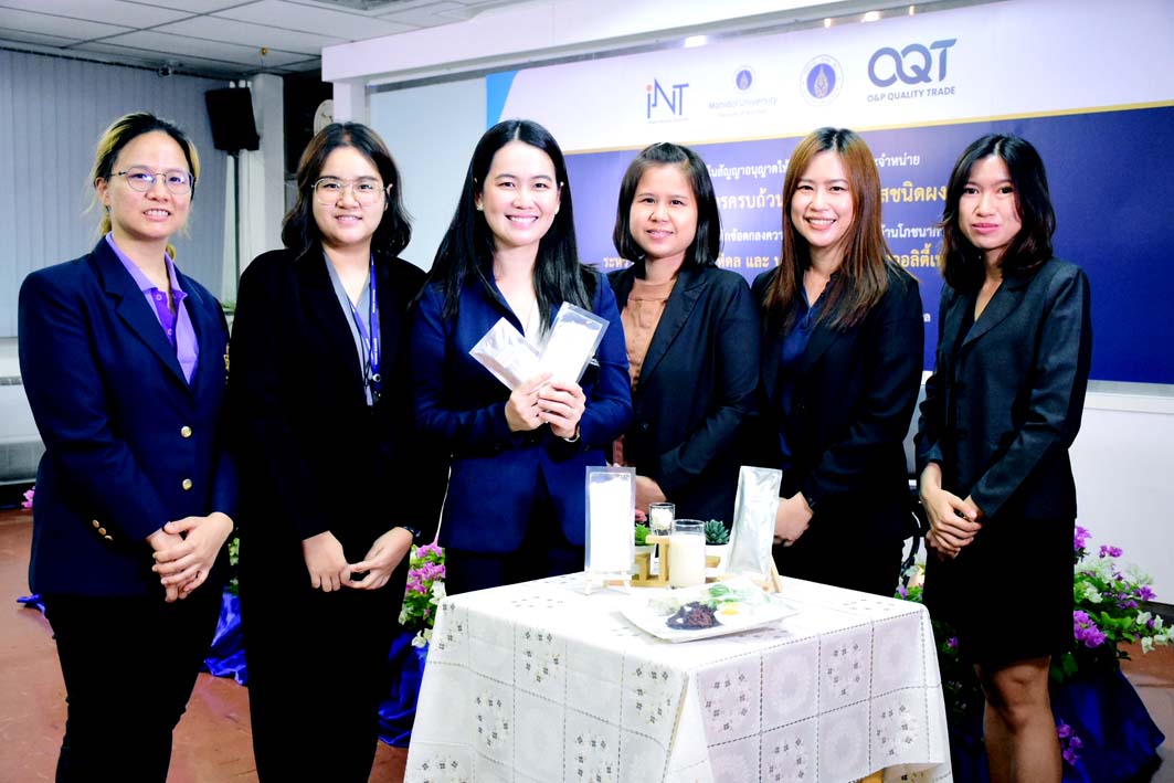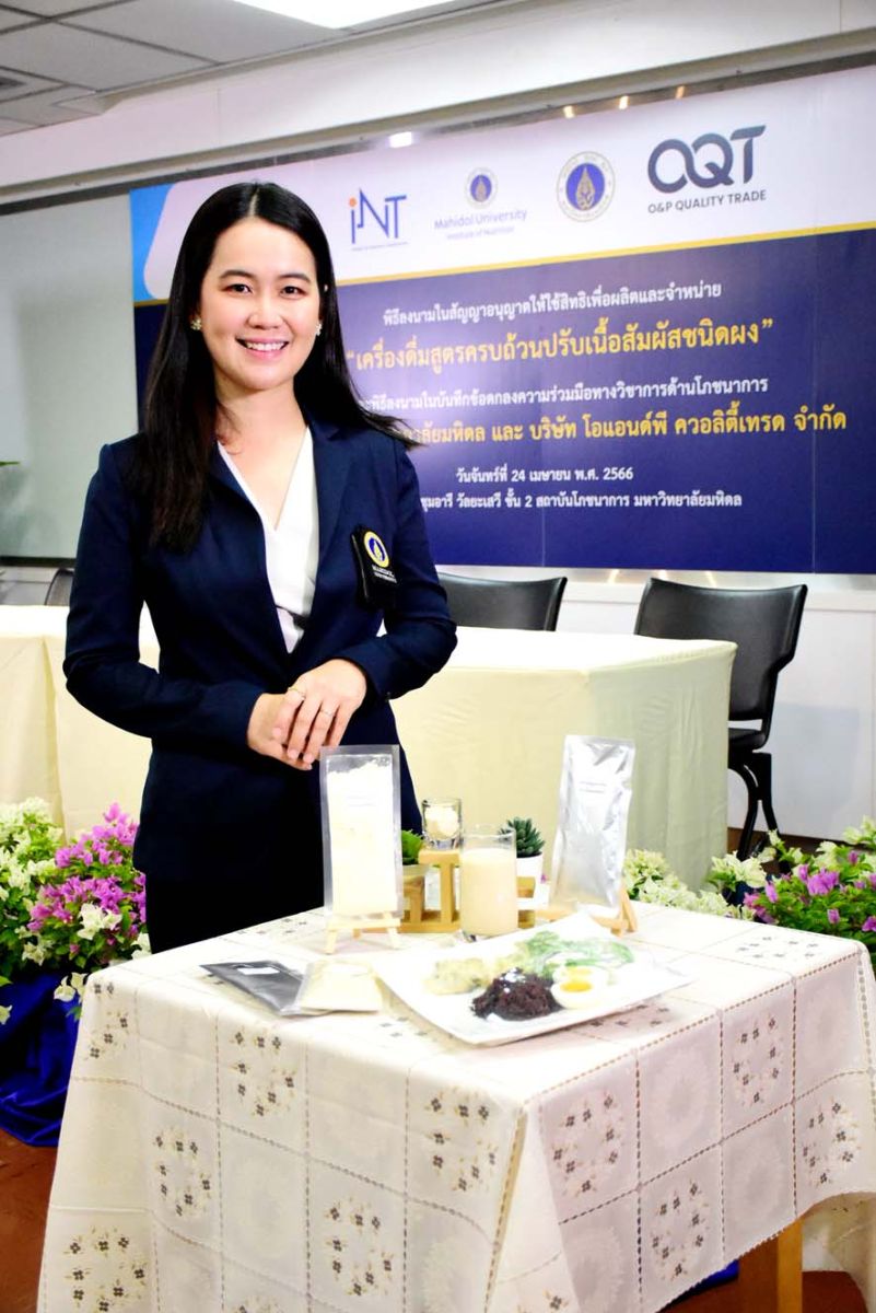 ผู้ช่วยศาสตราจารย์ ดร.ธัญญ์นลิน วิญญูประสิทธิ์ อาจารย์ประจำสถาบันสถาบันโภชนาการ มหาวิทยาลัยมหิดล และหัวหน้าโครงการพัฒนาผลิตภัณฑ์เครื่องดื่มสูตรครบถ้วนปรับเนื้อสัมผัสชนิดผง กล่าวว่า การพัฒนาผลิตภัณฑ์เครื่องดื่มสูตรครบถ้วนปรับเนื้อสัมผัสชนิดผงจะทำการศึกษาและปรับระดับของเนื้อสัมผัสของเครื่องดื่มทั้งหมด 4 สูตร เพื่อให้เหมาะสมตามมาตรฐาน IDDSI โดยใช้โปรตีนสกัดจากพืช (Plant-Based) และแป้งข้าวเป็นหลัก ในการปรับเนื้อสัมผัสของเครื่องดื่มให้มีความข้นหนืด แทนการใช้สารก่อเจลในกลุ่มไฮโดรคลอลอยด์ (Hydrocolloids) ซึ่งเป็นที่นิยมใช้ปรับเนื้อสัมผัสในอุตสาหกรรมอาหาร โดยการเลือกใช้แป้งข้าว นอกจากจะเป็นวัตถุดิบจากธรรมชาติแล้ว ยังมีความเสถียร ไม่ทำให้ความหนืดมีการเปลี่ยนแปลงหากชงทิ้งเอาไว้ รวมถึงมีรสชาติเป็นที่คุ้นเคยของผู้บริโภคและยังช่วยส่งเสริมการใช้วัตถุดิบจากเกษตรกรไทย เพิ่มมูลค่าและโอกาสทางการค้าให้กับเกษตรกรของไทยด้วย นอกจากนี้ การพัฒนาผลิตภัณฑ์เครื่องดื่มสูตรครบถ้วนชนิดผง มีการคำนวณปริมาณสารอาหาร ทั้ง 5 หมู่ โปรตีน คาร์โบไฮเดรต ไขมันที่ดี พร้อมเติมวิตามินและแร่ธาตุกว่า 20 ชนิด ที่จำเป็นและเพียงพอต่อความต้องการของร่างกายโดยผลิตภัณฑ์ดังกล่าวได้ผ่านการทดสอบการยอมรับจากอาสาสมัคร จำนวนมากกว่า50 คน ทั้งในกลุ่มของผู้ใหญ่ที่สุขภาพดี และผู้สูงอายุ และมีการทดสอบการใช้งานจริง(Use ability test) จากผู้สูงอายุ และนักกิจกรรมบำบัดผู้ฝึกการกลืนให้กับผู้ที่มีภาวะกลืนลำบาก และผู้ที่มีประสบการณ์เกี่ยวข้องกับมาตรฐาน IDDSI ทำให้มั่นใจได้ว่า ผลิตภัณฑ์ได้รับการออกแบบตรงตามมาตรฐาน IDDSI ตอบโจทย์การใช้งานจริง โดยการบริโภคเครื่องดื่มสูตรครบถ้วนปรับเนื้อสัมผัสชนิดผง 1 แก้ว (ประมาณ 250 มล.) ให้นำเครื่องดื่มสูตรครบถ้วนปรับเนื้อสัมผัสชนิดผงชงกับน้ำอุ่น (อุณหภูมิประมาณ50-60 องศาเซลเซียส เพื่อไม่ให้ความร้อนทำลายวิตามินและแร่ธาตุที่อยู่ในเครื่องดื่มไป)หรือน้ำอุณหภูมิห้อง ปริมาณ 150-180 มิลลิลิตร/แก้ว สามารถกินแทนมื้ออาหารได้ จะให้พลังงาน 250-300 กิโลแคลอรี ต่อหนึ่งหน่วยบริโภค โดยมีการกระจายตัวของพลังงานจากสารอาหารหลัก ได้แก่ โปรตีน ร้อยละ 20 ไขมันไม่เกินร้อยละ 30 คาร์โบไฮเดรตร้อยละ 50 และวิตามินและแร่ธาตุซึ่งเพียงพอต่อความต้องการในหนึ่งมื้อ สามารถบริโภคทดแทนอาหารมื้อหลักได้เหมาะสำหรับบุคคลทั่วไปที่ต้องการมื้อเร่งรีบ ผู้สูงอายุ หรือผู้ที่ต้องการควบคุมน้ำหนักซึ่งต้องมีสารอาหารครบ ทั้งโปรตีน คาร์โบไฮเดรต ไขมัน และวิตามินและแร่ธาตุ ตามสัดส่
