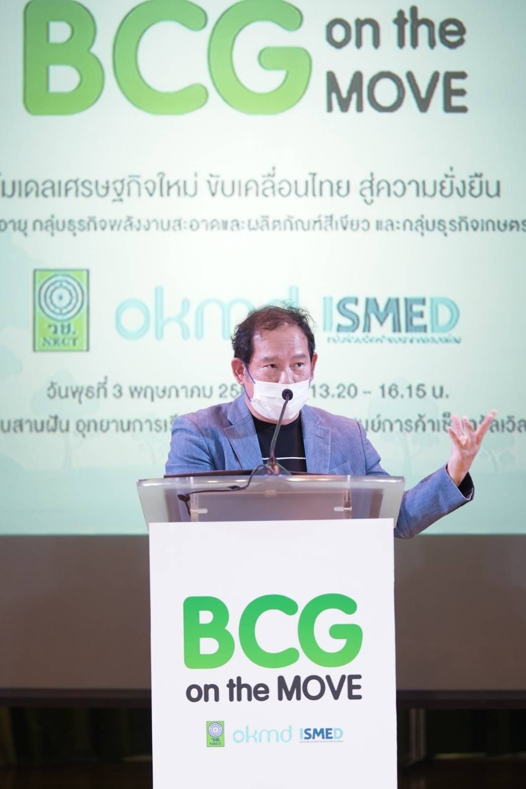 สำนักงานการวิจัยแห่งชาติ หรือ วช. และ สำนักงานบริหารและพัฒนาองค์ความรู้ (องค์การมหาชน) หรือ OKMD นำผลงานวิจัยด้านเทคโนโลยีและนวัตกรรมมาพัฒนาและบูรณาการเป็นหลักสูตรบ่มเพาะตามแนวทางโมเดลเศรษฐกิจมุ่งสู่การพัฒนาที่ยั่งยืน หรือ BCG Economy Model ได้รับการตอบรับเกินเป้า 140%จากผลการดำเนินงานที่ วช. และ OKMD ได้ร่วมกันจัดกิจกรรม “BCG on the move โมเดลเศรษฐกิจใหม่ สู่ความยั่งยืน” ในช่วงเดือนมีนาคม – เมษายน 2566 ที่ผ่านมา โดยการนำผลงานวิจัยด้านเทคโนโลยีและนวัตกรรมมาพัฒนาและบูรณาการเป็นหลักสูตรบ่มเพาะ มุ่งสร้างผู้ประกอบการพัฒนาโมเดลธุรกิจใหม่ๆ เข้าสู่เศรษฐกิจ BCG กว่า 20 หัวข้อ เน้น 3 กลุ่มธุรกิจสำคัญ ได้แก่ 1) ธุรกิจสังคมผู้สูงอายุ 2) ธุรกิจพลังงานสะอาดและผลิตภัณฑ์สีเขียว และ 3) กลุ่มธุรกิจเกษตรและอาหาร ครอบคลุมในพื้นที่ 12 จังหวัด เพื่อกระจายความรู้ไปสู่ผู้ประกอบการได้อย่างทั่วถึง ได้แก่ กรุงเทพมหานคร พระนครศรีอยุธยา ราชบุรี กาญจนบุรี ระยอง ชลบุรี ฉะเชิงเทรา ขอนแก่น นครราชสีมา เชียงใหม่ ลำพูน และพิษณุโลก โดยมีวิทยากรที่มีความเชี่ยวชาญ มีประสบการณ์ตรงและประสบความสำเร็จทางธุรกิจ มาถ่ายทอดองค์ความรู้และพัฒนาทักษะที่เกี่ยวข้องกับโมเดลเศรษฐกิจ BCG เพื่อให้ผู้ประกอบการสามารถนำไปพัฒนายกระดับสินค้าและบริการของตัวเอง