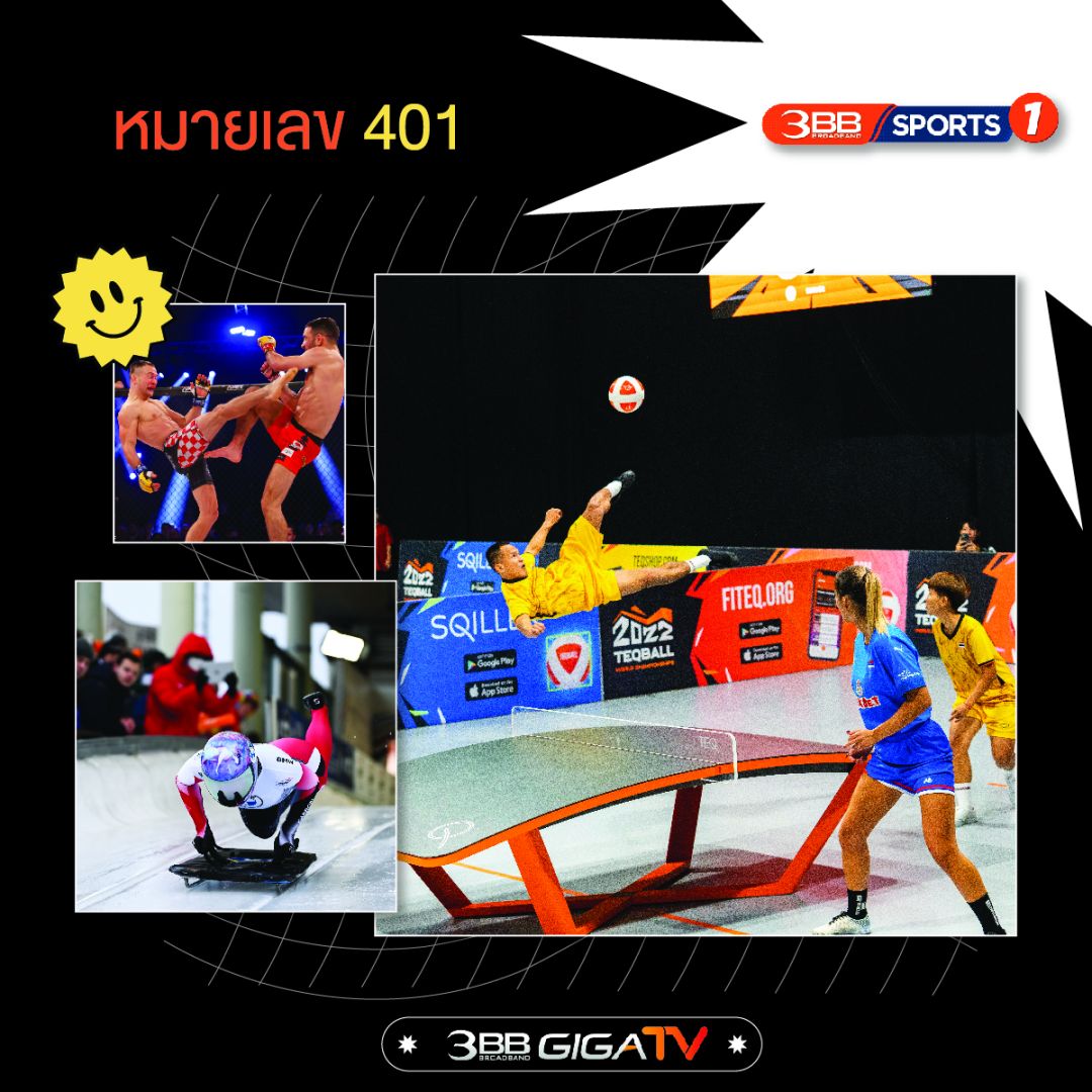 คนรักกีฬาต้องไม่พลาด 3BB Sports Oneหมายเลข 401สุดยอดช่องกีฬาแอ็กชันจากทั่วโลก Premium Content ลิขสิทธิ์เพียงหนึ่งเดียวในไทย พบกีฬาชั้นนำจากทั่วโลกส่งตรงให้แฟนกีฬา 3BB GIGATV ได้อินเทรนด์ก่อนใคร อาทิ รายการศึกมวยปล้ำ RAW และ SmackDown หรือรายการเทคบอลชิงแชมป์โลก 2023 ที่มีกำหนดออกอากาศในเดือนพฤษภาคมนี้ รวมทั้งรายการเลื่อนสไลด์น้ำแข็งชิงแชมป์โลก และรายการกีฬาที่หาชมได้ยาก ยกรวมมาไว้ที่ช่อง พร้อมทีมพากย์มืออาชีพที่คอกีฬาไม่ควรพลาด!!