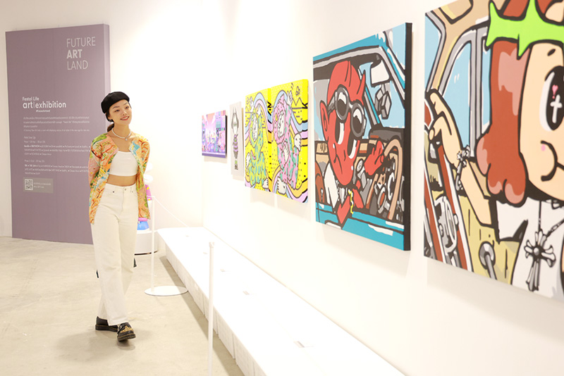 จิตตินันท์ หวั่งหลี กรรมการผู้จัดการร่วม-กลุ่มงานธุรกิจ ศูนย์การค้าฟิวเจอร์พาร์คและสเปลล์ กล่าวว่า ในโอกาสเปิดพื้นที่ FUTURE ART LAND เราจึงประเดิมด้วยการจัดนิทรรศการ FESTAL LIFE ART EXHIBITION SPACE พื้นที่ใหม่แห่งงานศิลปะของกรุงเทพตอนเหนือ เพื่อให้ฟิวเจอร์พาร์คและสเปลล์ ได้เป็นพื้นที่แห่งแรงบันดาลใจ รวมศิลปินชื่อดังกว่า 30 คน สร้างสรรค์ผลงานกว่า 80 ชิ้นงาน ภายใต้คอนเซ็ปต์ Festal Life ให้คุณใช้ชีวิตได้แบบไร้ขีดจำกัด เมื่อเดินเข้ามาในศูนย์ ก็จะได้สัมผัสประสบการณ์ศิลปะที่หลากหลาย ไม่ว่าจะเป็น การตกแต่งตามพื้นที่ต่างๆ ด้วย Art Installation และการตกแต่งบรรยากาศในศูนย์จากการ COLLA BORATION กับ ARTIST ต่างๆ, พื้นที่จัดแสดงนิทรรศการศิลปะ, SCULPTUREในพื้นที่ REST AREA, COMMON AREA ต่างๆ เป็นต้น