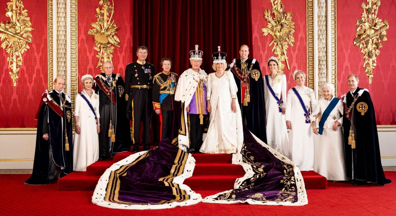 และอีกภาพเป็นพระบรมฉายาลักษณ์หมู่ที่สมเด็จพระเจ้าชาร์ลส์ที่ 3 และสมเด็จพระราชินีคามิลลา พร้อมทั้งสมาชิกราชวงศ์หลายพระองค์ทรงฉายพระบรมฉายาลักษณ์ร่วมกัน ประกอบด้วย เจ้าหญิงแอน พระราชกุมารี เจ้าชายวิลเลียม-แคทเธอรีน เจ้าชายและเจ้าหญิงแห่งเวลส์ พล.ร.ท.ทิโมธี ลอว์เรนซ์ พระสวามีในเจ้าหญิงแอน เจ้าชายริชาร์ด-เจ้าหญิงเบียกิตต์ ดยุกและดัชเชสแห่งกลอสเตอร์ เจ้าชายเอ็ดเวิร์ด-โซฟี ดยุกและดัชเชสแห่งเอดินเบอระ เจ้าชายเอ็ดเวิร์ด ดยุกแห่งเคนท์ พระญาติฝั่งสมเด็จพระราชินีเอลิซาเบธที่ 2 พระราชมารดาสมเด็จพระเจ้าชาร์ลส์ และเจ้าหญิงอเล็กซานดรา พระญาติจากฝั่งเจ้าชายฟิลิป พระราชบิดาสมเด็จพระเจ้าชาร์ลส์.