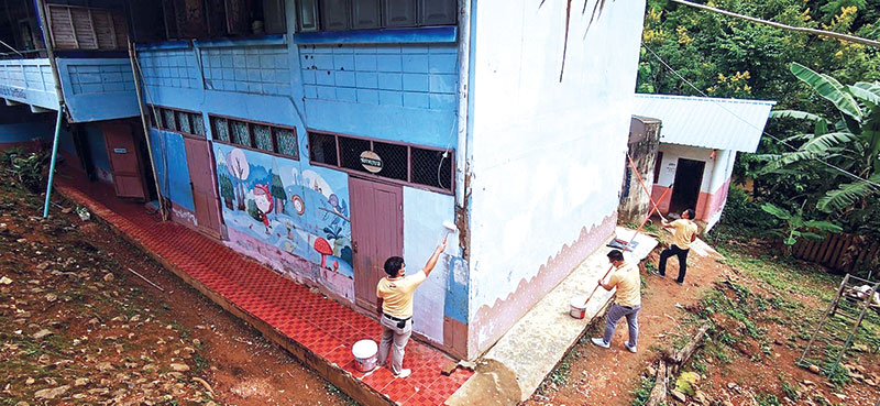 คุณวรพจน์ : ข้อแรกคือ เพราะต้องการให้นักเรียนได้มีส่วนร่วมโดยตรง เพราะเมื่อเขาร่วมทาสี เขาจะเกิดความภูมิใจที่เขามีส่วนช่วยรักษาโรงเรียน ทำให้โรงเรียนมีสีสันสวยงาม แต่ที่มากกว่านั้นคือ เขาจะได้เรียนรู้การทาสีแบบ learning by doing คือฝึกทำจริงๆ แม้อาจจะทาสีแล้วสีไม่เรียบ ไม่เสมอ แต่ก็จะมีพี่ๆ ค่อยแนะนำและแก้ไขให้ได้เรียนรู้ไปเรื่อยๆ เขาจะได้เกิดทักษะ และสามารถทำไปทาสีซ่อมแซมบ้านเรือนของตนเองได้ เมื่อวันที่เขาต้องช่วยพ่อแม่ทาสีบ้าน