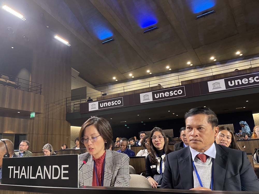 นางสาวตรีนุช กล่าวด้วยว่า ประเทศไทยพร้อมให้การสนับสนุนการดำเนินงานของยูเนสโก ไม่ว่าจะเป็นการปรับโครงสร้างใหม่ของยูเนสโกที่จะทำให้การทำงานสามารถครอบคลุมความร่วมมือข้ามสาขาที่จะช่วยให้บรรลุผลสัมฤทธิ์ตามเป้าหมาย SDG ได้ โดยประเทศไทยได้แสดงความขอบคุณ UNESCO Global Geoparks Council ที่เสนอให้โคราชจีโอพาร์คให้ได้รับการรับรองเป็น UNESCO Global Geopark แห่งใหม่ ทั้งนี้ ตนได้เชิญให้ผู้เข้าร่วมประชุมร่วมเฝ้ารับเสด็จสมเด็จพระกนิษฐาธิราชเจ้า กรมสมเด็จพระเทพรัตนราชสุดาฯ สยามบรมราชกุมารี ในการเสด็จพระราชดำเนินทรงเปิดงานนิทรรศการเฉลิมฉลองวาระครบรอบ 100 ปีประสูติ ของสมเด็จพระเจ้าพี่นางเธอ เจ้าฟ้ากัลยาณิวัฒนา กรมหลวงนราธิวาสราชนครินทร์ ซึ่งจัดขึ้นในวันที่ 16 พ.ค. 66 ที่ ห้อง Ségur Hall สำนักงานใหญ่องค์การยูเนสโก อีกด้วย