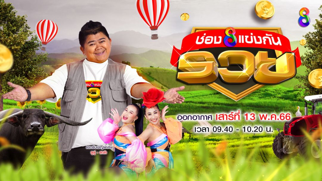 เริ่มที่รายการน้องใหม่แกะกล่อง “ช่อง8 แข่งกันรวย” นำโดย พิธีกรตัวตึง“โก๊ะตี๋ อารามบอย”พร้อมแขกรับเชิญสายฮา ลาล่าขวัญนภา และลูลู่ ดวงฤดีไม่ว่าจะไปที่ไหนก็จะมีแต่ความสุขและความสนุกโดยเทปแรกประเดิมกันที่ โรงเรียนวัดท่าไชย(ประชานุกูล) อ.สองพี่น้อง จ.สุพรรณบุรีมาพร้อมเกมการแข่งขันความสามารถด้านอาชีพ ชิงเงินรางวัลเติมฝันให้ชุมชนอยู่ดีกินดี สนับสนุนชุมชนกว่า 100,000 บาทเพื่อเชื่อมโยงให้เกิดความสามัคคีและความคิดสร้างสรรค์ พร้อมสร้างสาธารณประโยชน์ให้กับชุมชน และยังเป็นการประชาสัมพันธ์ของดีประจำท้องถิ่นให้พ่อแม่ชาวเกษตรกรสร้างรายได้ ที่สำคัญยังขนทัพนักแสดง และศิลปินดังมาร่วมตั้งทีมแข่งขันอีกด้วย โดยจะออกอากาศวันเสาร์ที่ 13 พฤษภาคมนี้ เวลา09.40 – 10.20 น. ทางสถานีโทรทัศน์ช่อง8เป็นครั้งแรก และครั้งต่อไปต่อกันที่จังหวัดเพชรบูรณ์