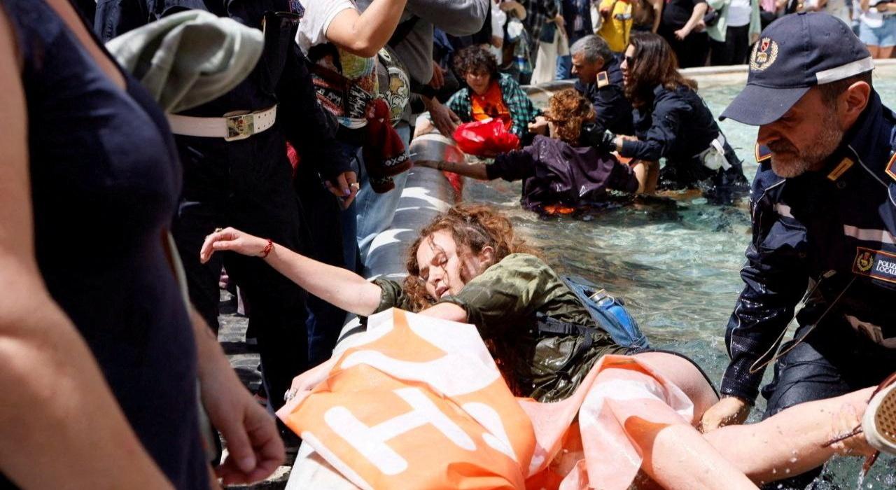 กลุ่มนักเคลื่อนไหวจากกลุ่ม “Last Generation”รวม 7 คน ถูกตำรวจกรุงโรมเข้ารวบตัวกลางน้ำพุ ท่ามกลางสายตานักท่องเที่ยวจำนวนมากที่ต่างถ่ายภาพและบันทึกคลิปวิดีโอเอาไว้ หลังจากท่ีกลุ่มนักเคลื่อนไหว บุกลงไปในน้ำพุเทรวี สถานที่ท่องเที่ยวชื่อดังของกรุงโรม แล้วเทผงถ่านลงไปในน้ำจนกลายเป็นสีดำ เพื่อต้องการแสดงจุดยืนต่อต้านการเปลี่ยนแปลงสภาพอากาศ โดยหลังจากเทผงถ่านลงไปแล้ว กลุ่มนักเคลื่อนไหวได้โชว์ป้ายผ้ากลางน้ำพุ ระบุข้อความว่า พวกเราจะไม่ยอมจ่ายค่าเชื้อเพลิงฟอสซิล พร้อมตะโกนว่าประเทศของเรากำลังจะตาย