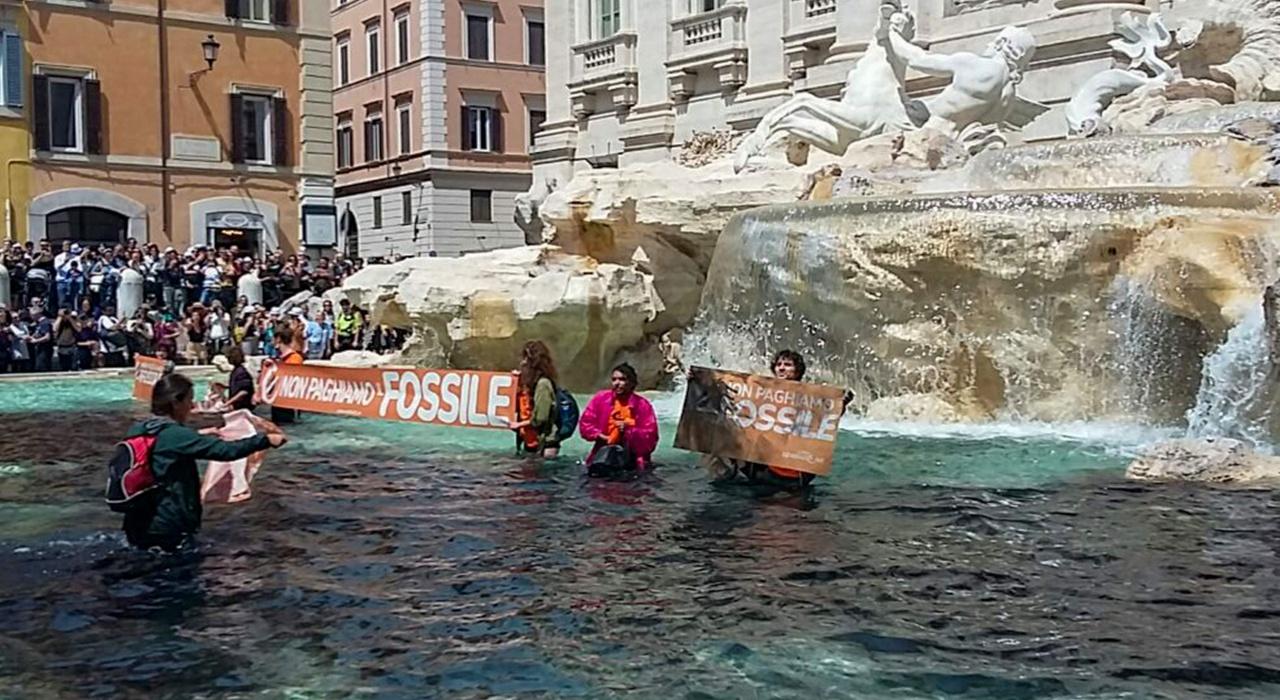กลุ่มนักเคลื่อนไหวด้านสิ่งแวดล้อม ปีนลงไปในน้ำพุเทรวี สถานที่ท่องเที่ยวชื่อดังในอิตาลี ก่อนจะเทผงถ่านสีดำลงไปในน้ำพุ เพื่อแสดงจุดยืนเรียกร้องให้รัฐบาลให้ความสำคัญกับการเปลี่ยนแปลงสภาพอากาศ