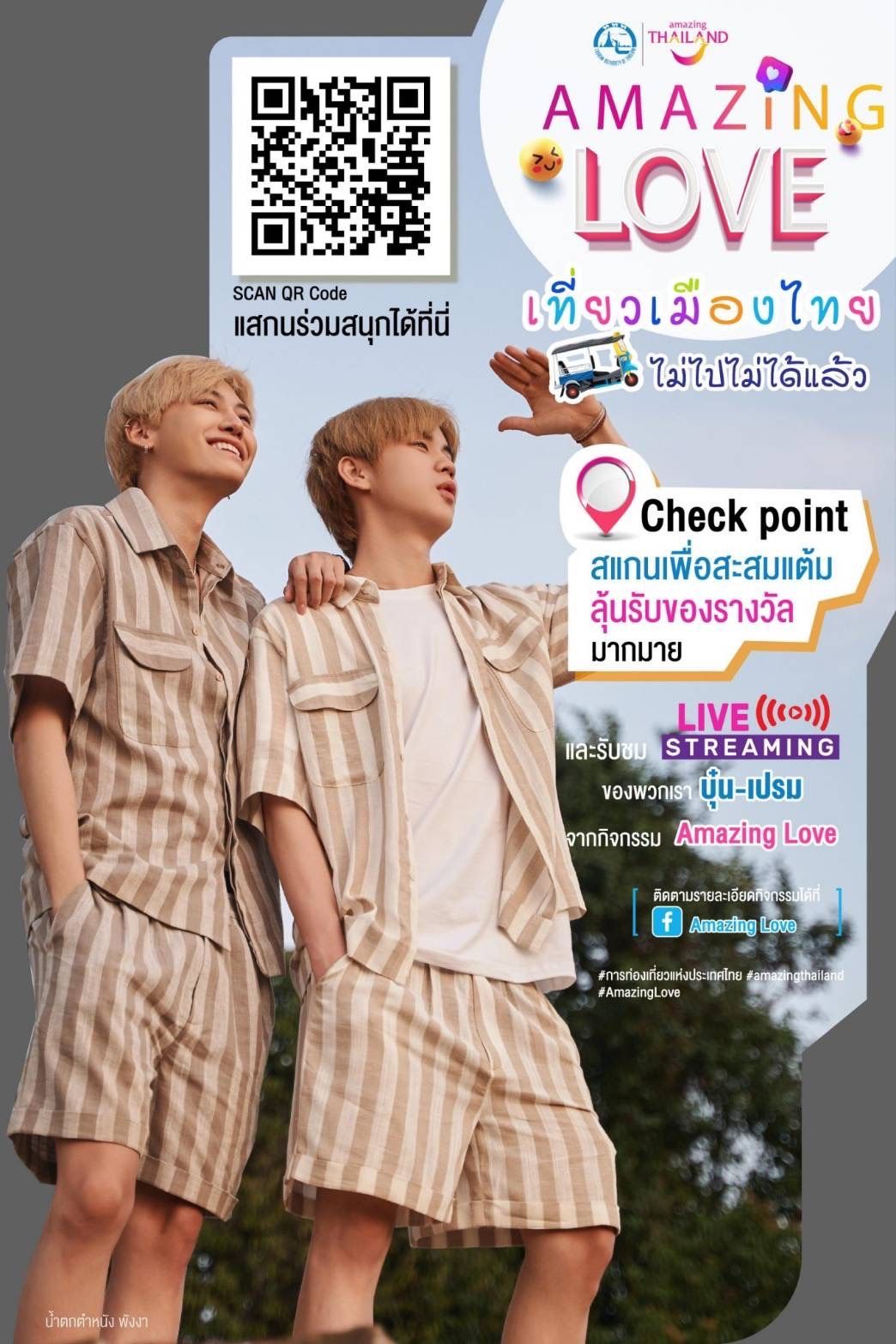 การท่องเที่ยวแห่งประเทศไทย สนับสนุนการจัดทำโครงการ Amazing Love ซึ่งเป็นโครงการสนับสนุนต่อยอดนโนบายการท่องเที่ยวแห่งประเทศไทย โดยจะแนะนำสถานที่ท่องเที่ยวในจังหวัดภูเก็ต และ จังหวัดพังงา นำโดย บุ๋น-นพณัฐ กันทะชัย และ เปรม-วรุศ ชวลิตรุจิวงษ์ นักแสดงไอดอลมากความสามารถ ที่จะมาร่วมแคมเปญในครั้งนี้