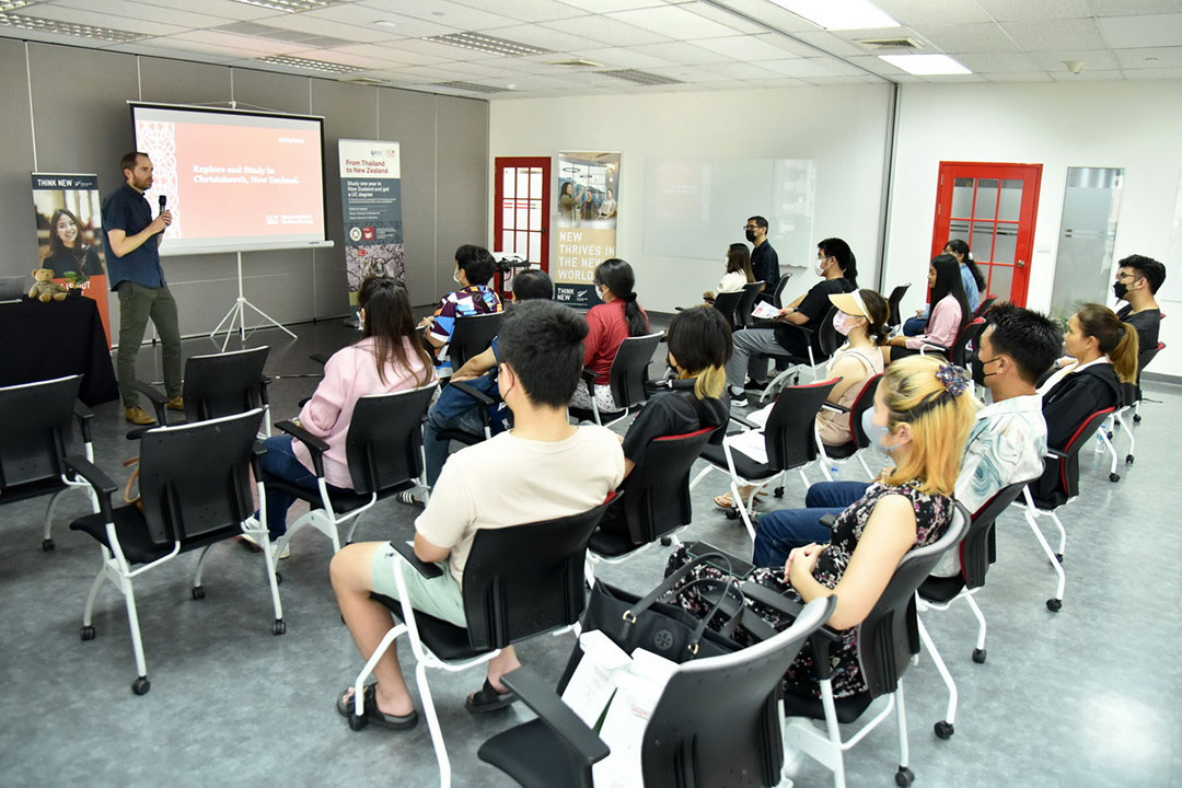 นางสาวช่อทิพย์ ประมูลผล ผู้อำนวยการประจำประเทศไทยและฟิลิปปินส์ หน่วยงานการศึกษานิวซีแลนด์ สถานทูตนิวซีแลนด์ ประจำประเทศไทย เป็นประธานกล่าวเปิดงานแนะแนวการศึกษาต่อระดับปริญญาตรีและปริญญาโท ประเทศนิวซีแลนด์ Study in New Zealand by Education New Zealand (ENZ) and University of Canterbury (UC พร้อมให้คำแนะนำเรื่องการศึกษาต่อประเทศนิวซีแลนด์ดีอย่างไรกับการทำงานในอนาคต โดยมี อาจารย์จาก University of Canterbury ประเทศนิวซีแลนด์ และวิทยากรจากศูนย์ศึกษาต่อต่างประเทศ (RSU Study Abroad Center) มหาวิทยาลัยรังสิต ร่วมให้คำแนะนำด้วย ณ RSU Study Abroad Center ชั้น 15 อาคาร RSU Tower สุขุมวิท 31 เมื่อเร็วๆ นี้