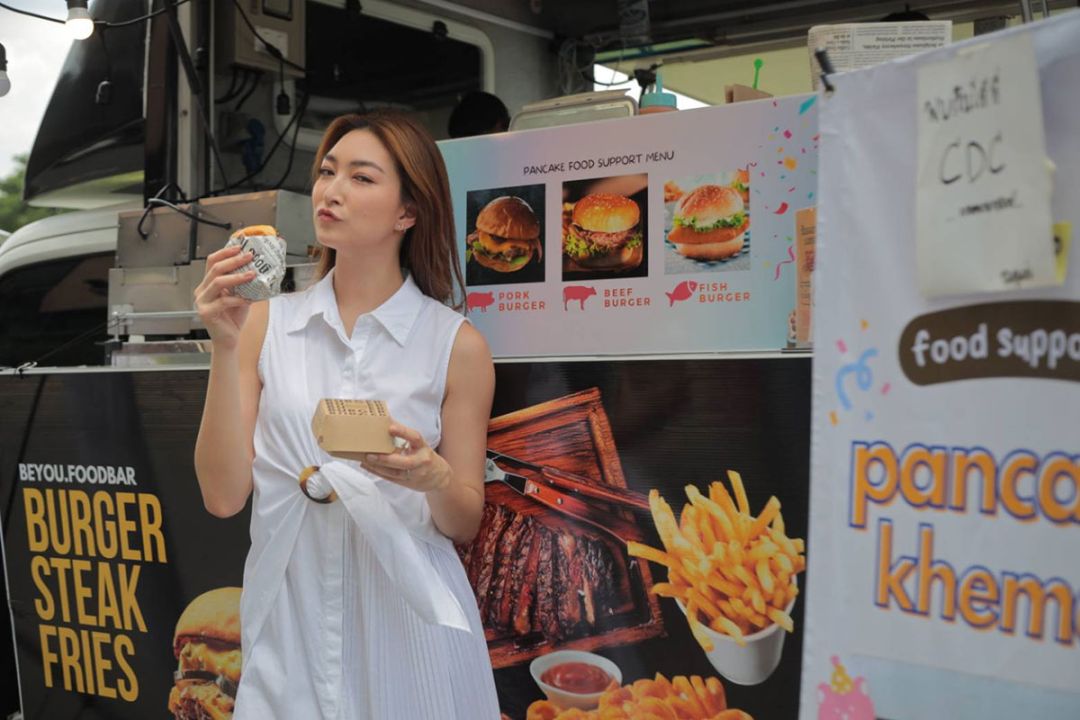 นางเอก “แพนเค้ก-เขมนิจ จามิกรณ์” ส่ง Food Support รถเบอร์เกอร์รถไอศกรีมมาเสิร์ฟให้นักแสดงและทีมงานกองซีรี่ส์เรื่อง “HANGOUT” ภายใต้การผลิตของ “โมโนออริจินอล” แบบจัดเต็มให้คลายร้อนงานนี้อิ่มใจทั้งผู้ให้และผู้รับ ณ โรงแรมย่านปทุมธานี เมื่อวันก่อนโดย แพนเค้ก เผยว่า