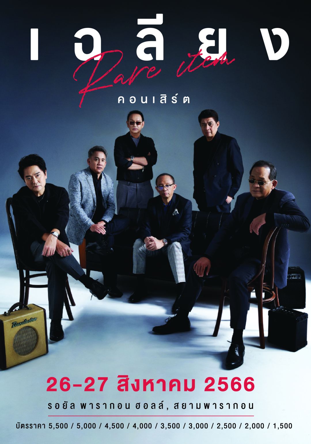 การกลับมารวมตัวเฉพาะกิจแบบครบทีมของวงดนตรีอารมณ์ดีระดับตำนานที่พร้อมเติมเต็มความสุข และความประทับใจครั้งใหม่ให้แฟนเพลงของ 6 ตัวโน้ตอารมณ์ดีสมาชิกวงเฉลียง “บอยแบนด์วงแรกของประเทศไทย” นำโดยดี้– นิติพงษ์ ห่อนาค / เจี๊ยบ – วัชระ ปานเอี่ยม / จุ้ย – ศุ บุญเลี้ยง / แต๋ง – ภูษิต ไล้ทอง / เกี๊ยง – เกียรติศักดิ์ เวทีวุฒาจารย์และ นก – ฉัตรชัย ดุริยประณีตสัมผัสความหายาก! ในคอนเสิร์ต“เฉลียง Rare Item”ที่ไม่เคยมีมาก่อนซึ่งสร้างสรรค์โดย Create Intelligenceมาร่วมสร้างความทรงจำด้วยกันวันที่ 26-27 สิงหาคม 2566 ณ รอยัลพารากอนฮอลล์ ศูนย์การค้าสยามพารากอน