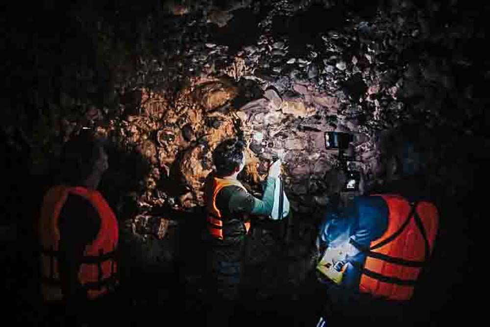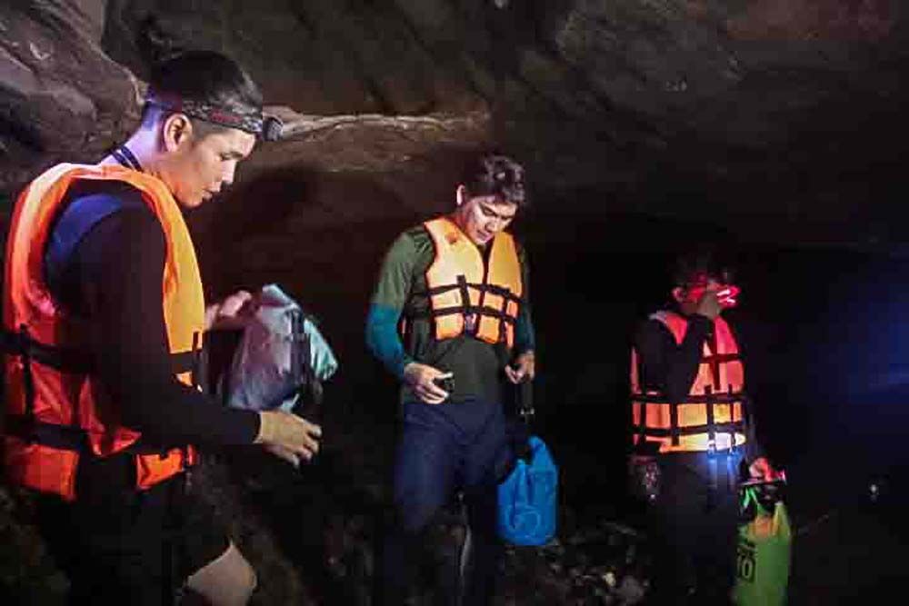 ลักษณะถ้ำเดือนถ้ำดาว เป็นถ้ำน้ำลอดต้องใส่ชูชีพเข้าไปด้วย เพราะต้องลอยคอไปตามน้ำ ช่วงแรกก่อนถึงทางเข้าถ้ำ จะเดินขึ้นเขาไป 200 เมตร พอถึงปากถ้ำก็สัมผัสได้ถึงอลังการ ระยะทางลอยคอชมถ้ำด้านใน 1.4 กิโลเมตร ไฮไลท์ภายในถ้ำจะได้ผจญภัยประคองตัวไปในน้ำทั้งตะแคง มุดน้ำ รอดผ่านช่องหินแคบๆ เรียกว่าได้ทั้งสนุก ทั้งตื่นเต้นกันเลยทีเดียว แถมยังมีหินงอกหินย้อย ซึ่งเคลือบด้วยแร่ซิลิกา เมื่อกระทบกับแสงไฟจะเกิดความระยิบระยับ คล้ายแสงเดือนแสงดาวบนฟ้าจึงเป็นที่มาของชื่อถ้ำเดือนถ้ำดาวนั่นเอง…ถึงไฮไลท์สุดท้ายอยู่ที่หินแพนเค้ก เป็นลักษณะชั้นหินแกรนิตเรียงกันเป็นชั้นมานานหลายล้านปี ซึ่งประเทศไทยพบหินลักษณะนี้น้อยมาก