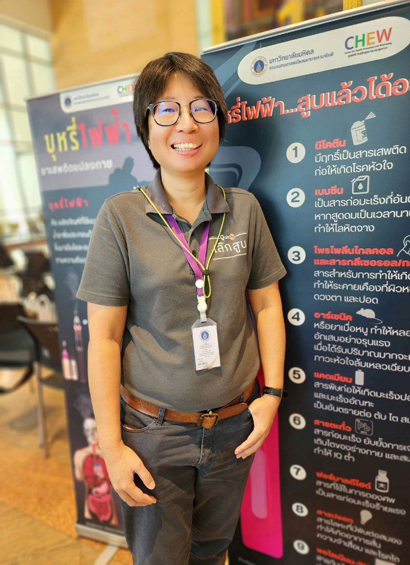 ด้านรองศาสตราจารย์ นายแพทย์ศิริไชย หงษ์สงวนศรี รองคณบดีฝ่ายกิจการนักศึกษา คณะแพทยศาสตร์โรงพยาบาลรามาธิบดี กล่าวว่า บุหรี่ไฟฟ้าเริ่มถูกพูดถึงกันอย่างกว้างขวางในสังคม แต่ที่น่าเป็นห่วงคือ ข้อมูลหลายอย่างที่มีการแชร์กันในโลกออนไลน์ถูกบิดเบือนและสร้างหลักฐานลวงเพื่อสร้างภาพลักษณ์ให้บุหรี่ไฟฟ้าเปลี่ยนจากสิ่งเสพติดที่อันตรายให้กลายเป็นทางเลือกในการสูบบุหรี่ ทั้งที่เมื่อดูจากข้อมูลที่แท้จริงแล้ว บุหรี่ไฟฟ้าไม่ใช่ทางเลือกของคนที่สูบบุหรี่อยู่แล้ว แต่กลับเป็นจุดเริ่มต้นให้เด็กและเยาวชนเข้ามาสนใจและริลองสูบบุหรี่ไฟฟ้า จนเกิดการเสพติดนิโคตินในที่สุด