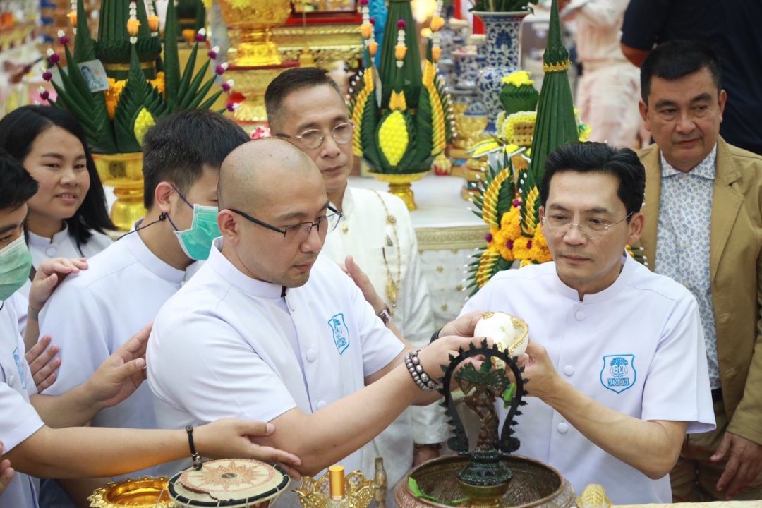 พิธีจัดขึ้นที่ศาลาทองคำ ที่ประดิษฐานสรีระสังขาร พระมงคลสิทธิการ หลวงพ่อพูล อัตตรักโข ซึ่ง พระครูปลัดสิทธิวัฒน์ หลวงพี่น้ำฝน เป็นประธานนำคณะสงฆ์สวดเจริญพระพุทธมนต์ ต่อหน้าสรีระสังขารหลวงพ่อพูล อตฺตรกฺโข จากนั้นเป็นพิธีไหว้ครูบูรพาจารย์ ครอบเศียรหนุมานวายุบุตร ซึ่งมีศิษยานุศิษย์ ศิลปิน ดารา ร่วมพิธีกันอย่างเนืองแน่น
