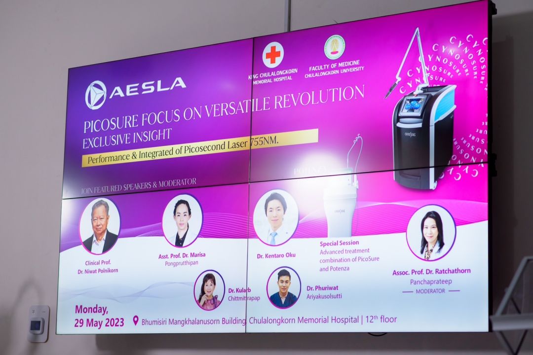ปฏิเสธไม่ได้เลยว่า PicoSure คือ หนึ่งในเทคโนโลยี Picosecond laser ที่ได้รับความนิยมเป็นอันดับต้น ๆ ในวงการความงามของประเทศไทยตลอดช่วงหลายปีที่ผ่านมา และเพื่อตอกย้ำกระแสความนิยมทั้งในประเทศไทยและภูมิภาคเอเชียตะวันออกเฉียงใต้ บริษัท เอสล่า จำกัด หรือ “AESLA” จึงได้จัดงาน “PICOSURE FOCUS ON VERSATILE REVOLUTION EXCLUSIVE INSIGHT – Performance & Integrated of Picosecond Laser 755NM.” ขึ้นณ บริเวณชั้น 12 ของอาคารภูมิสิริมังคลานุสรณ์ โรงพยาบาลจุฬาลงกรณ์ สภากาชาดไทย เมื่อวันที่ 29 พฤษภาคม 2566 ที่ผ่านมา โดยมีจุดประสงค์เพื่อถ่ายทอดประสิทธิภาพการใช้งานและความอเนกประสงค์ของ PicoSure จากแบรนด์ Cynosure ซึ่งเป็นเทคโนโลยี Picosecond Laser 755 NM. เครื่องแรกของโลก
