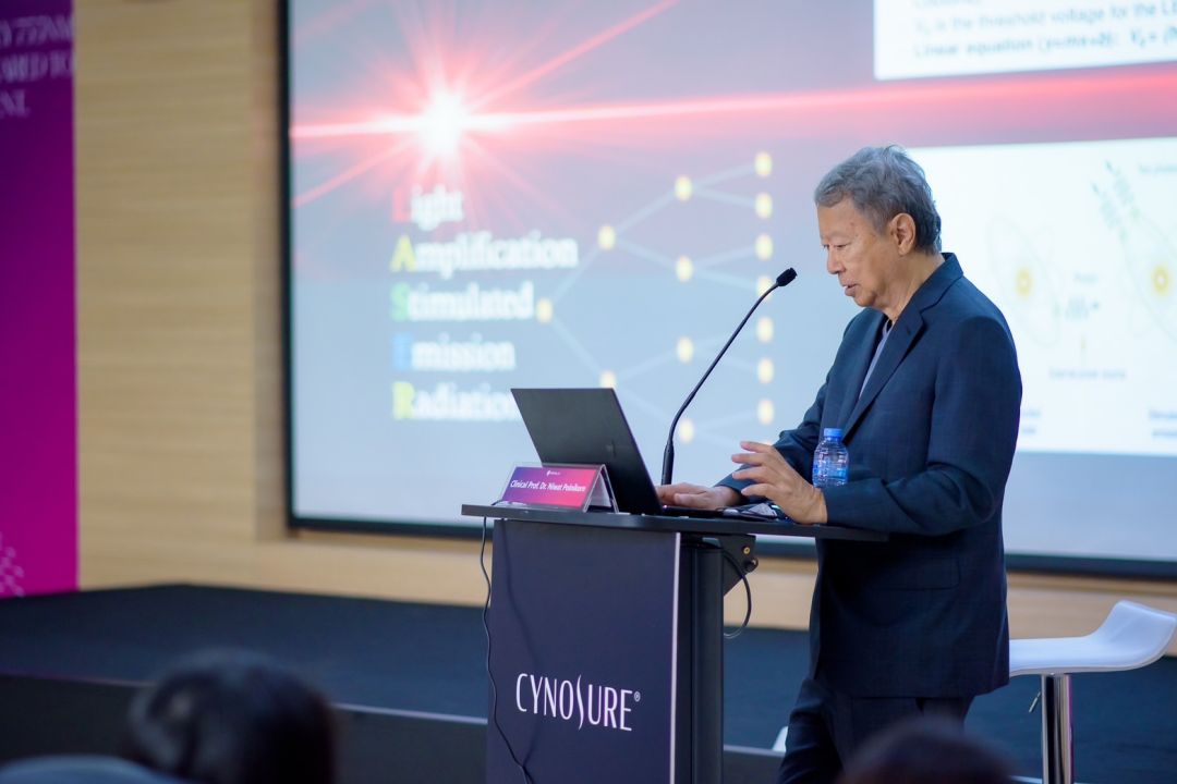 โดยในงานนี้นอกจากแกนหลักในการจัดอีเวนต์อย่าง AESLA ซึ่งเป็นผู้นำเข้าและจัดจำหน่ายเครื่องมือแพทย์ชั้นนำด้านความงามของแบรนด์ Cynosure อย่างเป็นทางการแล้ว ‘ศาสตราจารย์คลินิก เกียรติคุณ นายแพทย์นิวัติ พลนิกร’ ปูชนียบุคคลผู้บุกเบิกในการนำเครื่องมือรวมถึงเทคโนโลยีเลเซอร์มาใช้กับการรักษาคนไทย อีกทั้งเป็นผู้อยู่เบื้องหลังการขับเคลื่อนวงการแพทย์ผิวหนังและเลเซอร์ความงามของประเทศไทยมาโดยตลอด ยังเป็นอีกหนึ่งปัจจัยสำคัญที่ทำให้งาน “PICOSURE FOCUS ON VERSATILE REVOLUTION EXCLUSIVE INSIGHT” ได้รับกระแสตอบรับที่ดีจากบรรดาแพทย์ผู้เข้าร่วมงานกว่า 200 คน เพราะเพิ่มเติมจากการได้เรียนรู้และเห็นถึงศักยภาพของเครื่อง PicoSure และนวัตกรรมความงามอื่น ๆ จากแบรนด์ Cynosure เช่น Potenza และ SculpSure แล้ว แพทย์ผู้เข้าร่วมยังมีโอกาสได้เรียนรู้และรับการถ่ายทอดแนวคิด เทคนิค และประสบการณ์จากบรรดาแพทย์ผู้ชำนาญการอย่างใกล้ชิดอีกด้วย ซึ่งนอกจาก ศาสตราจารย์คลินิก เกียรติคุณ นายแพทย์นิวัติ พลนิกร ที่มาถ่ายทอดองค์ความรู้โดยละเอียด ตั้งแต่ประวัติความเป็นมาและพื้นฐานของเลเซอร์ ไปจนถึงแหล่งกำเนิด จุดเด่น เทคนิคการใช้งาน รวมถึงตัวอย่างเคสที่เข้าทำการรักษาด้วยเครื่อง PicoSure งานนี้ยังได้รับเกียรติจาก ผศ. พญ.มาริษา พงศ์พฤฒิพันธ์, Dr.Kentaro Oku, รศ.ดร.พญ.รัชต์ธร ปัญจประทีป, แพทย์หญิง กุหลาบ จิตต์มิตรภาพ และ นายแพทย์ภูริวัจน์ อริยกุศลสุทธิ ที่เข้ามาร่วมแบ่งปันเทคนิคและประสบการณ์ตรง เพื่อให้งานครั้งนี้ดำเนินไปได้ลุล่วงอย่างสมบูรณ์มากยิ่งขึ้น โดยหัวข้อต่าง ๆ ในการบรรยายก็มีทั้ง “การประยุกต์ใช้คลื่นและเทคโนโลยีของ PicoSure กับคนไข้ในประเทศไทย” โดยศาสตราจารย์คลินิก เกียรติคุณ นายแพทย์นิวัติ พลนิกร, “ทำไมถึงต้องเลือกใช้ PicoSure 755 nm. ในการรักษา?” โดย ผศ. พญ.มาริษา พงศ์พฤฒิพันธ์, “ความอเนกประสงค์ของเครื่อง PicoSure และการผสานเทคโนโลยีร่วมกับเครื่องอื่นเพื่อประยุกต์ใช้ในการรักษาคนไข้” โดย Dr.Kentaro Oku เป็นต้น ซึ่งทั้งหมดทั้งมวลของงานนี้ รศ.ดร.พญ.รัชต์ธร ปัญจประทีป ได้เป็นผู้ดำเนินงานตลอดการบรรยาย