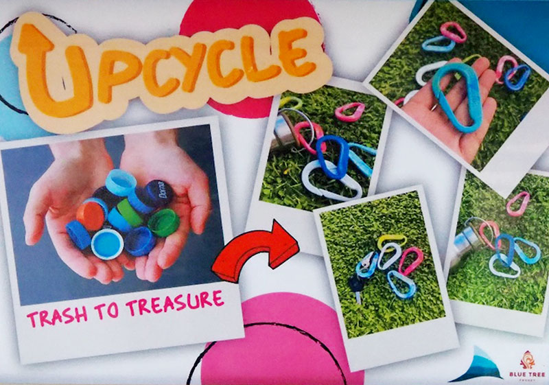 Waste – การคัดแยก การแปรรูปขยะ ลดการใช้พลาสติกแบบใช้ครั้งเดียวทิ้ง มีนโยบายที่จริงจังเกี่ยวกับการแยกขยะ โดยจัดให้มีการแยกขยะในพื้นที่สาธารณะแบ่งเป็น 2 ประเภท ได้แก่ ขยะรีไซเคิล และขยะทั่วไป ซึ่งขยะรีไซเคิลที่เก็บได้จะนำไปขายและนำรายได้คืนกลับให้พนักงานในทุกๆ ปี รวมทั้งยังมีการเลือกใช้บรรจุภัณฑ์สำหรับใส่อาหารแบบที่ย่อยสลายได้ อาทิ กล่องอาหารและหลอดจากชานอ้อย ช้อนส้อมไม้ ทั้งนี้พื้นที่ห้องอาหารภายในบลูทรี ยังรณรงค์ให้งดใช้ขวดน้ำพลาสติก และในส่วนของเศษอาหารก็จะส่งต่อให้ฟาร์มเลี้ยงสัตว์เพื่อใช้เป็นอาหารต่อไป ซึ่งในอนาคตมีแผนจะแบ่งเศษอาหารไว้สำหรับทำปุ๋ยเองด้วย รวมทั้งสนับสนุนการสร้างเรือพลาสติกร่วมกับองค์กร Oceans For All เพื่อเก็บขยะในท้องทะเลรอบๆ พื้นที่เกาะภูเก็ตด้วย