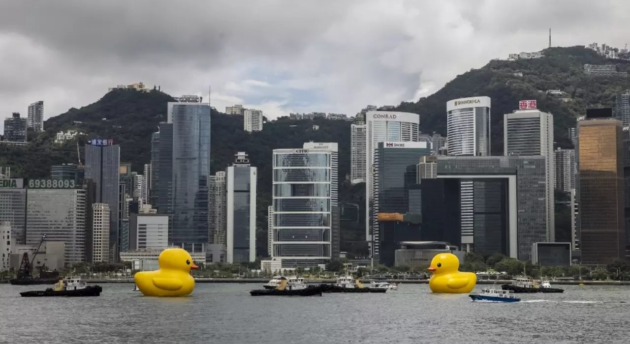 เมื่อวันที่ 9 มิ.ย. 2566 เป็ดยางสีเหลืองขนาดใหญ่ จำนวน 2 ตัวถูกส่งถึงท่าเรือวิคตอเรีย ฮาร์เบอร์ ของฮ่องกง เพื่อร่วมเป็นสีสันของงานแสดงผลงานศิลปะ “ดับเบิ้ล ดักส์” (Double Duck) หรือ “เป็ดคู่” ของนายฟลอเรนติน ฮอฟแมน ศิลปินชาวดัตช์