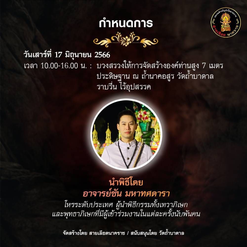 ร่วมงานฟรีวันเสาร์ที่ 17 นี้ณวัดถ้ำบาดาลต.ลำพญากลางอ.มวกเหล็กจ.สระบุรีหรือหากอยากร่วมบุญแต่ไม่สะดวกมาร่วมงาน สามารถทำบุญ