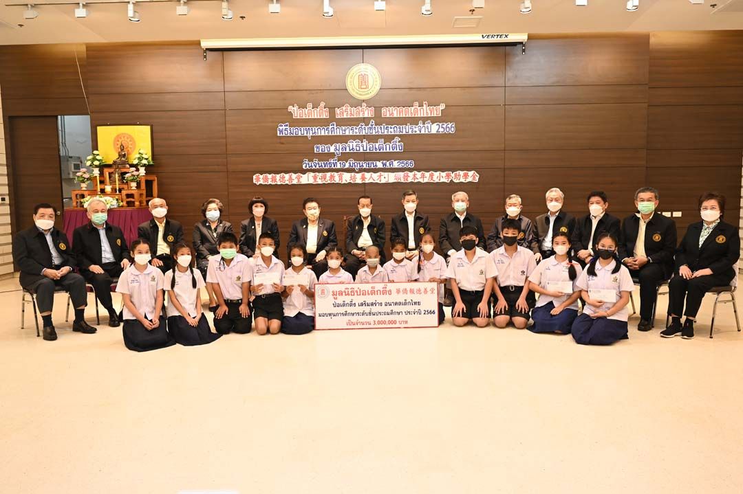 19 มิถุนายน 2566 มูลนิธิป่อเต็กตึ๊ง นำโดย นายวิเชียร เตชะไพบูลย์ ประธานกรรมการมูลนิธิฯ เป็นประธานในพิธี พร้อมด้วย นายสัก กอแสงเรือง รองประธานกรรมการ นายวิชิต ชินวงศ์วรกุล รองประธานกรรมการ นางศิริกุล โอภาสวงศ์ กรรมการและเลขาธิการ และคณะกรรมการมูลนิธิฯ ร่วมในพิธีมอบเงินทุนการศึกษาระดับชั้นประถม ประจำปี พ.ศ. 2566 ให้แก่เยาวชนที่ประพฤติดีแต่ขาดแคลนทุนทรัพย์ จำนวน 1,500 ทุนๆ ละ 2,000 บาท เป็นจำนวนทั้งสิ้น 3,000,000 บาท เพื่อสนับสนุนให้เยาวชนได้รับโอกาสทางการศึกษาอย่างเท่าเทียมตามที่มุ่งหวัง เติบโต พร้อมมีวิชาความรู้ สร้างอนาคตของตนเองและครอบครัว เป็นคนดีของสังคมและประเทศชาติ อีกทั้งยังเป็นการช่วยเหลือแบ่งเบาภาระของผู้ปกครอง ณ ห้องประชุมชั้น 2 อาคาร 2 มูลนิธิป่อเต็กตึ๊ง พลับพลาไชย กรุงเทพฯ