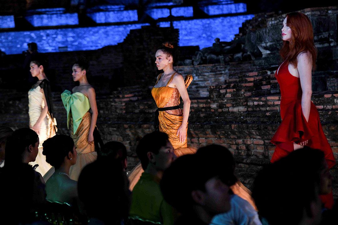 แฟชั่นโชว์เปิดตัวในงานแถลงข่าวครั้งนี้ ตอบโจทย์หนึ่งใน 5 soft powers คือ F-ashion ที่ได้ดีไซเนอร์ไฮเอนด์จับมือรังสรรค์เสื้อผ้าในลุคโมเดิร์นชิกบนผ้าไทย ที่ดีไซน์เฉพาะเพื่อกองประกวด Miss International Queen ส่งเมสเสจเครื่องแต่งกายด้วยผ้าไทยทอด้วยศิลปะตกทอดสืบชั่วลูกหลาน แต่ก็โมเดิร์น ร่วมสมัย เทรนดี้ ใส่ได้จริง และสาวผู้เข้าประกวดจากทั่วโลก จาก 22 ประเทศ 22 วัฒนธรรมจะพาเครื่องแต่งกายในผ้าไทยของเรา ส่งภาพเป็นแรงกระเพื่อมเชื่อมโยงเครือข่ายโซเชียลมีเดียของสาวๆ และไปยังทั่วโลก ความแรงขนาดนี้ต้องมีแรงหนุนสุดครีเอทีฟไม่แพ้กัน จาก 6 แบรนด์ชั้นนำของประเทศไทยที่มีผลงานเป็นที่ยอมรับจากแฟนผู้ติดตามทั่วโลก ดังนี้