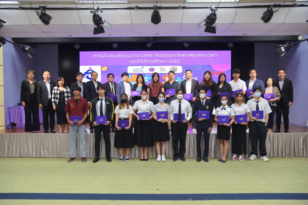 เมื่อเร็วๆ นี้ (14 มิ.ย. 66) มหาวิทยาลัยธุรกิจบัณฑิตย์ จัดงาน “DPU CWIE Day” ประจำปีการศึกษา 2565 โดยมีการนำเสนอโครงงานของนักศึกษาสหกิจศึกษาบนเวที เชิญสถานประกอบการของนักศึกษามาบอกเล่าประโยชน์ที่ได้รับ และร่วมชมนิทรรศการ “What Are Your CWIE Projects: สร้างอะไรให้สถานประกอบการ” ซึ่งคัดสรรและให้รางวัลโครงงาน 4 ประเภทจาก 36 ผลงาน ได้แก่ รางวัลวิทยาศาสตร์และเทคโนโลยีดีเด่น รางวัลนวัตกรรม CWIE ดีเด่น รางวัลมนุษยศาสตร์/สังคมศาสตร์/การจัดการดีเด่น รางวัลโครงงาน CWIE นานาชาติดีเด่น รางวัล Popular Vote และรางวัล Workplace Fan Favorite นอกจากนี้ยังจัดงาน Job Fair พบปะสถานประกอบการที่สนใจเข้าร่วมภาคีเครือข่าย การรับสมัครงานแนะนำบริษัทไทย-จีน พร้อมทั้งการอบรมทักษะการเข้าสัมภาษณ์ และอบรมเสริมสร้างทักษะการทำงาน