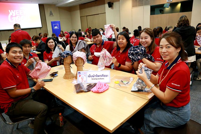 กิจกรรมดังกล่าวนี้มีเป้าหมายเพื่อสร้างความสัมพันธ์ที่ยั่งยืนระหว่างพนักงานแอกซ่าผู้มีส่วนได้ส่วนเสีย และสังคม โดยได้รับความร่วมมือจากเหล่าอาสาสมัคร ผู้บริหาร และพนักงานแอกซ่า รวมกว่า 100 คน ที่มาร่วมแบ่งปันความสุขสู่สังคม นำโดยกิจกรรม “เย็บเต้านมเทียมและผ้าโพกศีรษะ” ที่อาสาสมัครได้ร่วมแรงร่วมใจทำเต้านมเทียมและผ้าโพกศีรษะ จำนวน 200 ชิ้นเพื่อเตรียมส่งมอบให้ผู้ป่วยโรคมะเร็งเต้านมที่ขาดแคลนทุนทรัพย์ โรงพยาบาลพระมงกุฎเกล้า นอกจากนี้ แอกซ่ายังได้ส่งมอบชุดสุขอนามัย หรือ Hygiene kits จำนวน 100 ชุด ซึ่งประกอบด้วยสิ่งของและผลิตภัณฑ์เสริมอาหารที่จำเป็นต่อสุขอนามัยและการดูแลสุขภาพเด็กและผู้หญิงให้แก่มูลนิธิเด็กโสสะแห่งประเทศไทย ในพระบรมราชินูปถัมภ์