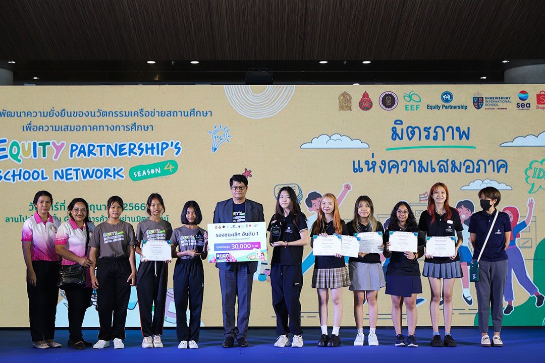 ทั้งนี้ โครงการ Equity Partnership’s School Network ปีที่ 4 มีผลิตภัณฑ์ที่ได้รางวัลจากโครงการประกอบด้วยรางวัลที่ 1 เป็นของทีม Southซี้ จากโรงเรียนบ้านหนองธงจังหวัดพัทลุงและโรงเรียนสาธิตประสานมิตรหลักสูตรนานาชาติ ซึ่งได้พัฒนาผลิตภัณฑ์ผ้าพันคอ mambrid Eco print พิมพ์ลายจากธรรมชาติ 100% ขึ้นมาจัดจำหน่าย รางวัลที่ 2 เป็นของทีม Moonsilk จากโรงเรียนบ้านแกใหญ่จังหวัดสุรินทร์และโรงเรียนนานาชาติเซนต์ แอนดรูว์ กรุงเทพฯ ที่ได้ร่วมกันผลิตสบู่โปรตีนไหมออกมาจัดจำหน่าย รางวัลที่ 3 เป็นของทีม TBS Team จากโรงเรียนบ้านทับเบิกร่วมใจจังหวัดเพชรบูรณ์และโรงเรียนนานาชาติโชรส์เบอรี กรุงเทพฯ ที่ได้ร่วมกันผลิตกระเป๋าผ้าสะพายปักลายม้งประยุกต์และกระเป๋าผ้าคล้องมือปักลายม้งประยุกต์