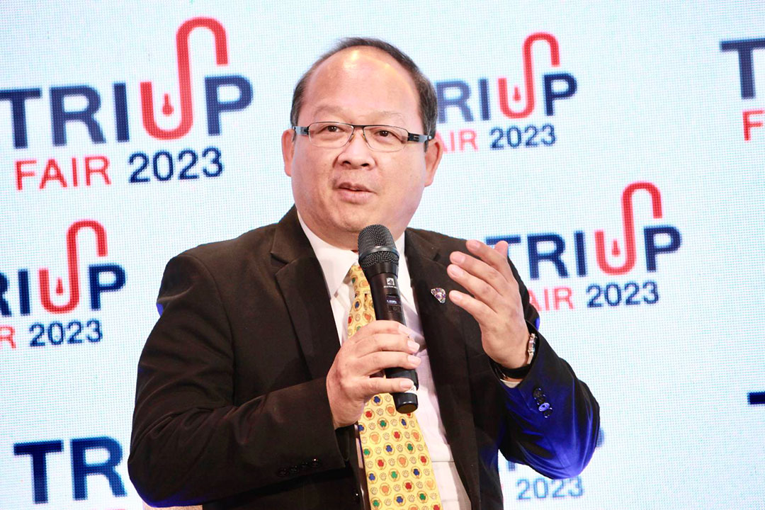 ขณะที่ คุณกอบสุข เอี่ยมสุรีย์ รองประธานคณะกรรมการส่งเสริมนวัตกรรมและวิจัย หอการค้าไทยและสภาหอการค้าแห่งประเทศไทย กล่าวในฐานะภาคเอกชนที่มีสมาชิกกลุ่ม Startup และ SMEs อยู่ทั่วประเทศว่า หน่วยงานมีพันธกิจสำคัญในการร่วมมือกับหน่วยงานภายนอกเพื่อส่งเสริมผู้ประกอบการ โดยยึดถือหลักการ CCS ได้แก่ Connect เชื่อมโยงการทำงาน ภาครัฐ เอกชน Competitive มุ่งเน้นการยกระดับขีดความสามารถในการแข่งขันของประเทศ และ Sustainable มุ่งสู่การพัฒนาผู้ประกอบการ สร้างเศรษฐกิจไทยให้ยั่งยืน ซึ่งการจัดงาน TRIUP Fair 2023 ครั้งนี้ หอการค้าไทยและสภาหอการค้าแห่งประเทศไทย ภายใต้นโยบาย ‘Connect the Dots’ ได้มีส่วนร่วมประชาสัมพันธ์ไปยังสมาชิกที่นักธุรกิจรุ่นใหม่ (Young Entrepreneur chamber of commerce; YEC) และ ผู้ประกอบการในเครือข่ายเพื่อเข้าร่วมงานและเข้าร่วมกิจกรรมการเจรจาธุรกิจ (Business matching) โดยมองว่าผลงานวิจัยและนวัตกรรมจะช่วยสร้างความเข้มแข็งและการเติบโตด้านนวัตกรรมให้กับผู้ประกอบการได้จริง