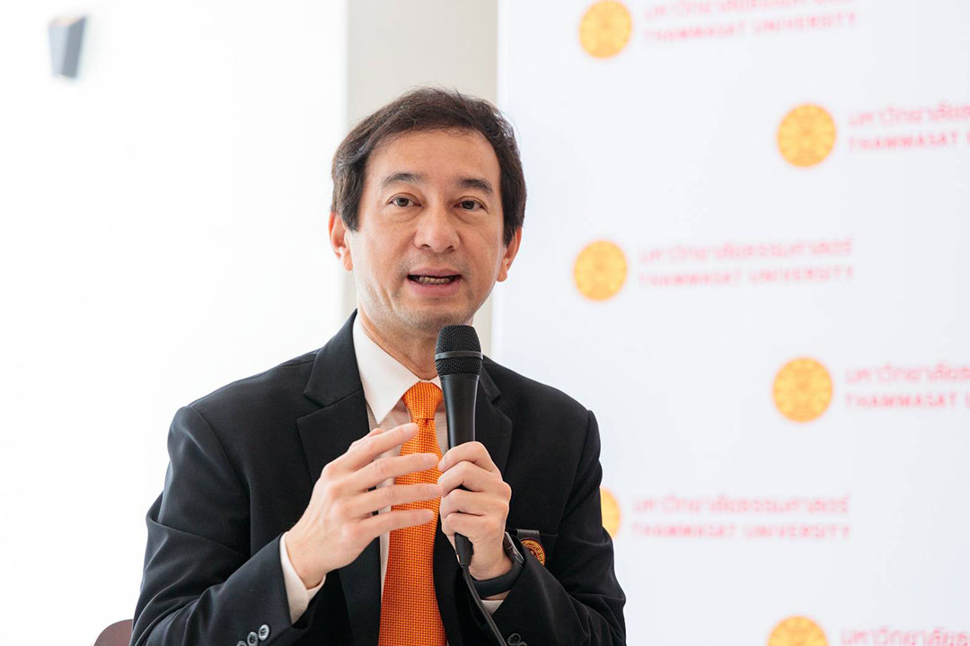 รศ.ดร.พิภพ อุดร รองคณบดีฝ่ายวิชาการ มหาวิทยาลัยธรรมศาสตร์ กล่าวว่า ปัจจุบันมหาวิทยาลัยธรรมศาสตร์มีทั้งสิ้น 28 คณะ ครอบคลุม 300 หลักสูตร มุ่งผลิตบัณฑิตที่มีคุณภาพและเป็นผู้นำในทุกวงการ มีเจตนารมณ์เป็นมหาวิทยาลัยเพื่อประชาชนและทลายกำแพงการเรียนรู้ เป็น “ตลาดวิชาในยุคดิจิทัล” โดยมีหลักสูตรออนไลน์ให้ทุกคนเรียนรู้ได้ทุกที่ทุกเวลา มีเครดิตแบงก์สะสมคะแนนไว้ในอนาคต เพราะขณะนี้ “ความรู้อายุสั้น แต่คนอายุยืน” สิ่งที่เราเคยเรียนมาไม่เพียงพอต่อการเรียนรู้ตลอดชีวิต ธรรมศาสตร์จึงมีพันธกิจให้ทุกคนกลับมาเติมเต็มความรู้ที่ต้องการได้เพิ่มขึ้นตลาดเวลา