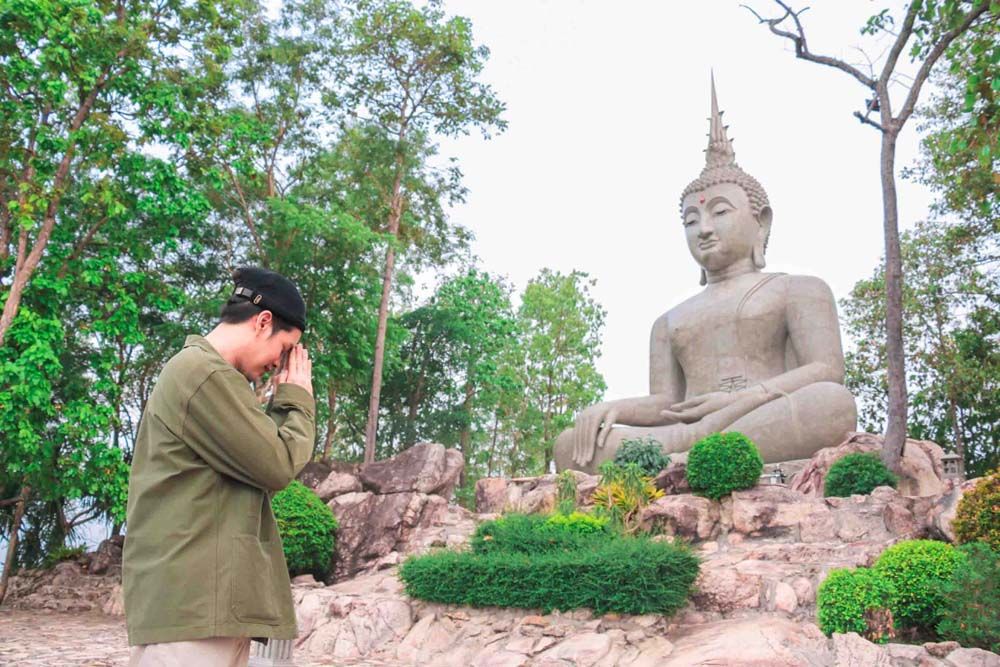 ก่อนจะไปซึมซับโครงการทหารพันธุ์ดี แห้วชวนไปตื่นตากับพระพุทธรูปองค์ใหญ่ภูพุทโธ หรือพระพุทธมารวิชัย สิริตรัยรัตนคุณ ซึ่งเป็นชื่อพระราชทานจาก สมเด็จพระบรมราชชนนีพันปีหลวง ที่ประดิษฐานอยู่ภายในค่ายศรีสองรักจุดเด่นขององค์พระ คือ จะเปลี่ยนสีไปตามสภาพแสงที่ตกกระทบองค์พระ ส่วนด้านข้างขององค์พระยังมีพระธาตุพุทธสติเป็นที่บรรจุพระบรมสารีริกธาตุที่ได้อัญเชิญมาจากประเทศอินเดีย จากนั้นลัดเลาะเที่ยวเชิงเกษตรกับโครงการทหารพันธุ์ดี ค่ายศรีสองรัก ที่นี่มีการปลูกผักไฮโดรโปนิกส์ ซึ่งเป็นส่วนหนึ่งของโครงการย่อย ชุมชนเบิกบาน อาหารปลอดภัย นอกจากนี้ ภายในโครงการยังมีจุดเรียนรู้การเลี้ยงเป็ดไข่บางปะกงพระราชทาน ไก่พันธุ์ประดู่หางดำ ไก่พันธุ์เหลืองหางขาว และไก่ชีแถมยังมีการเลี้ยงกระบือ เพื่อนำมูลมาทำปุ๋ยคอก มีบ่อทดลองเลี้ยงหอยขมกุ้งฝอย และการเลี้ยงกบอิงกับธรรมชาติเพื่อเป็นแหล่งโปรตีนอีกด้วยแต่จุดที่แห้วดูจะสนใจเป็นพิเศษก็ต้อง…การผลิตน้ำส้มควันไม้ และการทดลองเลี้ยงไส้เดือน ใกล้ๆ กัน…ยังมีโครงการทดลองเพาะแหนแดงพระราชทาน รวมถึงโครงการปลูกผักสมุนไพรที่เป็นความร่วมมือกับทางโรงพยาบาลค่ายศรีสองรักตบท้ายกับโครงการ บ้านนี้มีรัก ปลูกผักกินเองเรียกว่ามาที่เดียว ได้ข้อมูลแน่นๆ กลับไปทดลองทำเองกันได้เลย