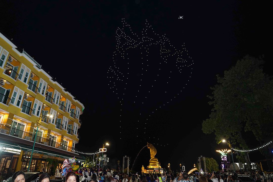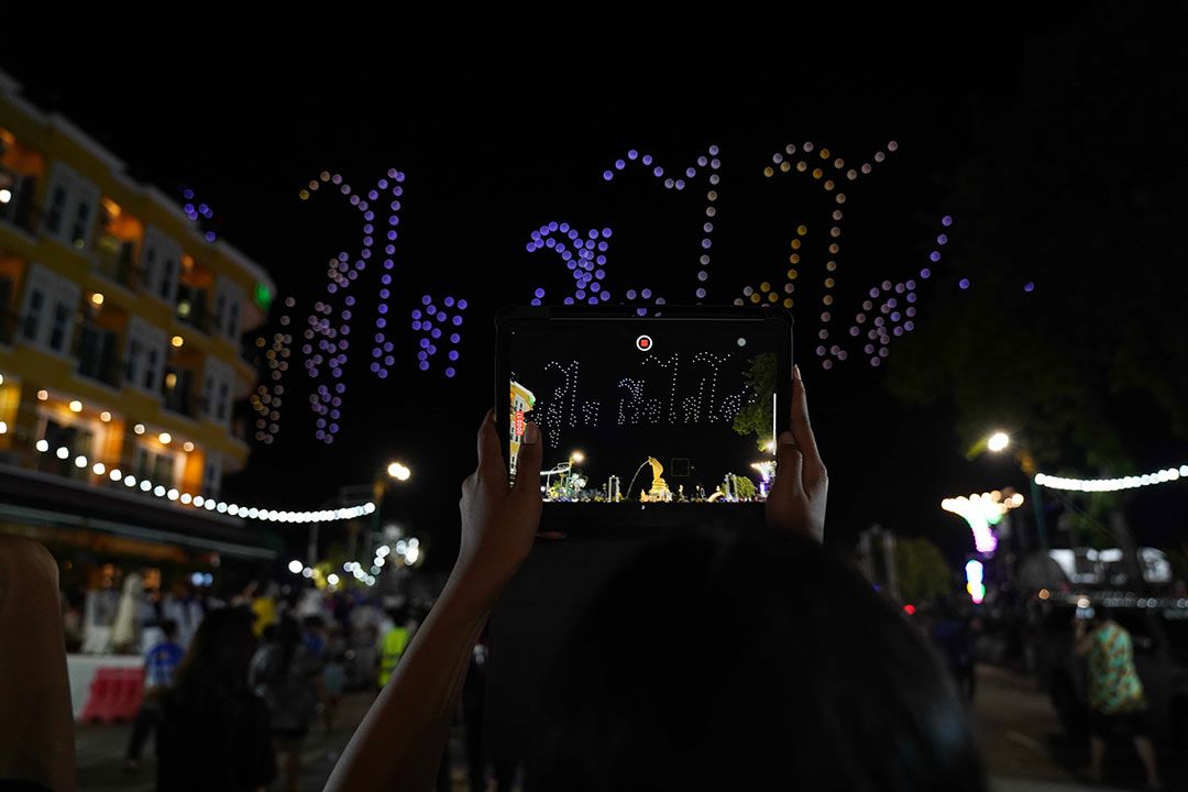 แสดงบินโดรนแปลภาพพระบรมฉายาลักษณ์ ในงาน ‘บวงสรวงพญาศรีสัตตนาคราช 2566’