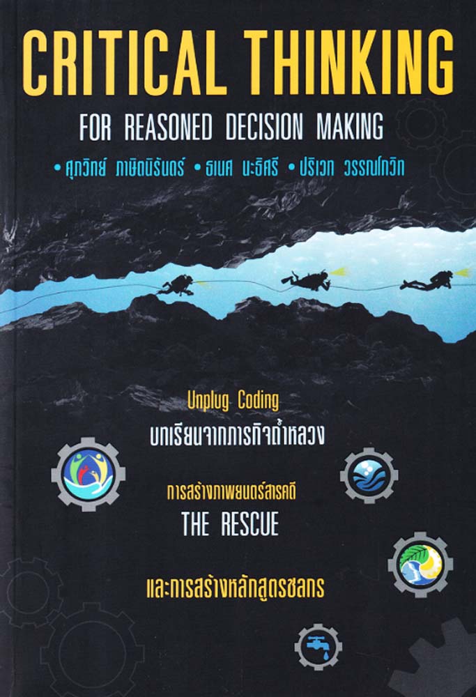 “Critical Thinking for Reasoned Decision Making” ผู้เขียน ศุภวิทย์ ภาษิตนิรันดร์ (เซนเซเล็ก),ธเนศ นะธิศรี,ปริเวท วรรณโกวิท “ภารกิจถ้ำหลวง” เป็นปรากฎการณ์ใหญ่ที่ทั่วโลกจับตามอง ไม่ใช่เพียงแค่การลุ้นระทึกไปกับปฏิบัติการช่วยเหลือ 13 ชีวิตที่ติดค้างอยู่ภายในถ้ำ ซึ่งกินระยะเวลานานร่วมครึ่งเดือน แต่ผู้คนจากทั่วโลกต่างจดจ้องรอฟังข่าวสารในทุกยุทธวิธี ทุกการตัดสินใจ ทุกแผนงาน เพื่อให้ได้ผลลัพธ์ตามที่ตั้งจิตส่งใจให้แทบทุกวินาที “ถ้ำหลวง-ขุนน้ำนางนอน” จึงกลายเป็นศูนย์กลางของความร่วมมือจากทั่วทุกมุมโลก แหล่งรวมผู้เชี่ยวชาญด้านการกู้ชีพ การดำน้ำ การสำรวจ และอีกมากมาย ที่ต่างเดินทางเข้ามาในพื้นที่เพื่อระดมสรรพกำลังทางปัญญา เทคนิค วิธีการ และความคิด เพื่อให้ภารกิจนี้สำเร็จให้จงได้ หนังสือ “Critical Thinking for Reasoned Decision Making” เล่มนี้ ได้นำเสนอองค์ความรู้ผ่านประสบการณ์ตัวอย่างจากปรากฎการณ์ถ้ำหลวง เพื่อให้ผู้อ่านได้เห็นภาพและร่วมคิดวิเคราะห์สถานการณ์ไปพร้อมกัน อีกทั้งเป็นการขยายองค์ความรู้สู่การสร้างหลักสูตรชลกร (บริหารจัดการน้ำ) นำมาขยายผลสู่องค์ความรู้ด้านการบริหารจัดการทรัพยากรน้ำ และสร้างแบบแผนความสำเร็จสู่เวทีการประชุมทางวิชาการระดับโลก ในช่วงเวลาต่อมา นับเป็นประโยชน์อย่างยิ่งทั้งต่อภาคส่วนต่าง ๆ เพื่อการนำไปขยายผล เป็นการตกผลึกความรู้ สู่การนำไปปฏิบัติได้จริง เพื่อเป็นการเพิ่มศักยภาพในการเผชิญและจัดการปัญหา เพื่อนำทางไปสู่ความสำเร็จ ทั้งต่อการงานและการดำเนินชีวิต ถือเป็น Unplug Coding บทเรียนจากภารกิจถ้ำหลวง การสร้างภาพยนตร์สารคดี The Rescue และการสร้างหลักสูตรชลกร หนังสือราคาเล่มละ 349 บาท