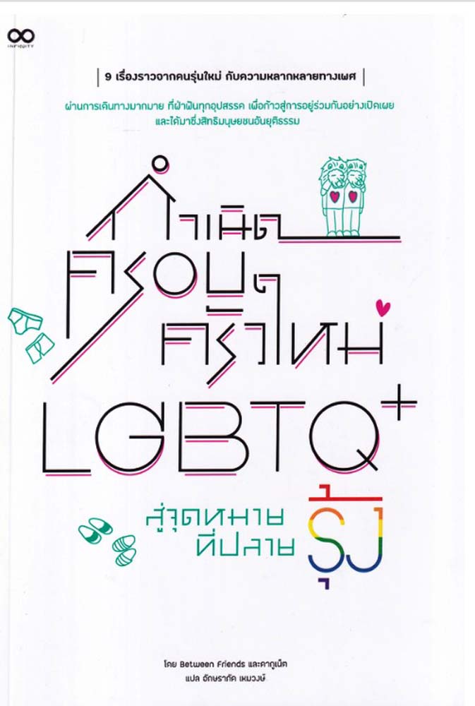 “กำเนิดครอบครัวใหม่ LGBTQ+ สู่จุดหมายที่ปลายรุ้ง” ผู้เขียน Between Friends,คากูเน็ต ผู้แปล อักษราภัต เหมวงษ์ “LGBTQ” คือ ความหลากหลายทางเพศ ถือเป็นความชอบที่หลากหลายเฉพาะบุคคล เฉกเช่นเดียวกับการชื่นชอบสิ่งต่างๆในชีวิตประจำวันทั่วไป เช่น รูป รส กลิ่น สี รสนิยมต่างๆ โดยไม่ได้เกิดจากความผิดปกติจากส่วนใดส่วนหนึ่งของร่างกายแต่อย่างใด LGBTQ ย่อมาจาก L คือ Lesbian กลุ่มผู้หญิงรักผู้หญิง G ย่อมาจาก Gay กลุ่มชายรักชาย มาจาก Bisexual กลุ่มที่รักได้ทั้งผู้ชายและผู้หญิง T คือTransgender กลุ่มคนข้ามเพศ จากเพศชายเป็นเพศหญิง หรือเพศหญิงเป็นเพศชาย และ Q ย่อมาจาก Queer กลุ่มคนที่พึงพอใจต่อเพศใดเพศหนึ่ง โดยไม่ได้จำกัดในเรื่องเพศ และความรัก “กำเนิดครอบครัวใหม่ LGBTQ+ สู่จุดหมายที่ปลายรุ้ง” เป็นงานวรรณกรรมรวมเรื่องประสบการณ์ชีวิตสิทธิมนุษยชน ของ9 เรื่องราวจากคนรุ่นใหม่ กับความหลากหลายทางเพศ ผ่านการฝ่าฟันทุกอุปสรรคเพื่อก้าวสู้การอยู่ร่วมกันอย่างเปิดเผย และได้มาซึ่งสิทธิมนุษยชนอันยุติธรรม เรื่องราวทั้งหมดไม่ใช่แค่เรื่องของ “ความรัก” แต่เป็นเรื่องของ “การต่อสู้” เพื่อให้ความรักที่มีได้สิทธิที่เท่าเทียมกันในสังคม ความจริงจังของการต่อสู้เพื่อสิ่งนี้ ขณะที่ต้องประคับประคองความรักไปด้วยเป็นเรื่องราวที่น่าทึ่ง จึงเป็นเรื่องที่น่าติดตามเป็นอย่างมาก หนังสือเล่มนี้ เป็นหนังสือขายดีจากประเทศเกาหลี มีเรื่องราวที่น่าประทับใจ และยังนำเสนอเบื้องหลังการฝ่าฟันอุปสรรคที่ไม่เคยเปิดเผยที่ใดมาก่อนอีกด้วย ราคาเล่มละ 295 บาท