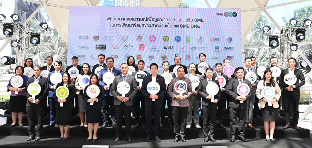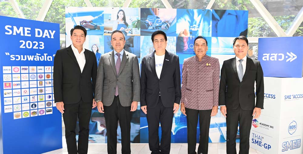 สสว.จัดงาน SME Day 2023 “รวมพลังโต” จับมือ 46 พันธมิตรทั้งภาครัฐและเอกชน อาทิ กรมการพัฒนาชุมชน, กรมส่งเสริมการเกษตร, กรมส่งเสริมการค้าระหว่างประเทศ, กรมพัฒนาฝีมือแรงงาน, กรมบังคับคดี, กรมวิทยาศาสตร์บริการ, สถาบันวิจัยวิทยาศาสตร์และเทคโนโลยีแห่งชาติ, สำนักงานพัฒนาวิทยาศาสตร์และเทคโนโลยีแห่งชาติ, ธนาคารออมสิน, บรรษัทประกันสินเชื่ออุตสาหกรรม, ตลาดหลักทรัพย์แห่งประเทศไทย, สถาบันอาหาร, สถาบันรับรองมาตรฐานไอเอสโอ เป็นต้น เพื่อประกาศเจตนารมณ์บูรณาการการส่งเสริม SME ในการพัฒนาข้อมูลข่าวสารผ่านเว็บไซต์ www.smeone.info