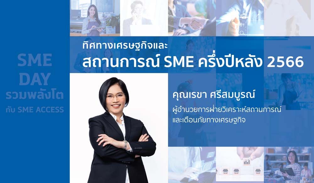 ด้าน เรขา ศรีสมบูรณ์ ผู้อำนวยการฝ่ายวิเคราะห์สถานการณ์และเตือนภัยทางเศรษฐกิจให้ข้อมูลอัปเดตทิศทางเศรษฐกิจและสถานการณ์ SME ครึ่งปีหลัง 2566 ว่า “หลังการระบาดของโควิด-19 ผู้ประกอบการ MSME เริ่มฟื้นตัววัดจากมีการจ้างงานสูงขึ้นและธุรกิจท่องเที่ยวกำลังจะฟื้นตัว การท่องเที่ยวแห่งประเทศไทยประมาณการไว้ว่านักท่องเที่ยวต่างชาติจะมีจำนวนถึง 25 ล้านคน ธุรกิจท่องเที่ยวและอื่นๆ ที่เกี่ยวข้อง เช่น ที่พัก ร้านอาหาร ขนส่ง ของที่ระลึก นวด สปา ฯลฯ จะเริ่มกลับมาคึกคัก รวมถึงการส่งออกสินค้ากลุ่มอาหาร ผัก ผลไม้ ทั้งสดและแปรรูปยังไปได้ดีแต่ไม่ควรพึ่งพิงคู่ค้าหรือลูกค้ารายใดหรือกลุ่มใดกลุ่มเดียว”
