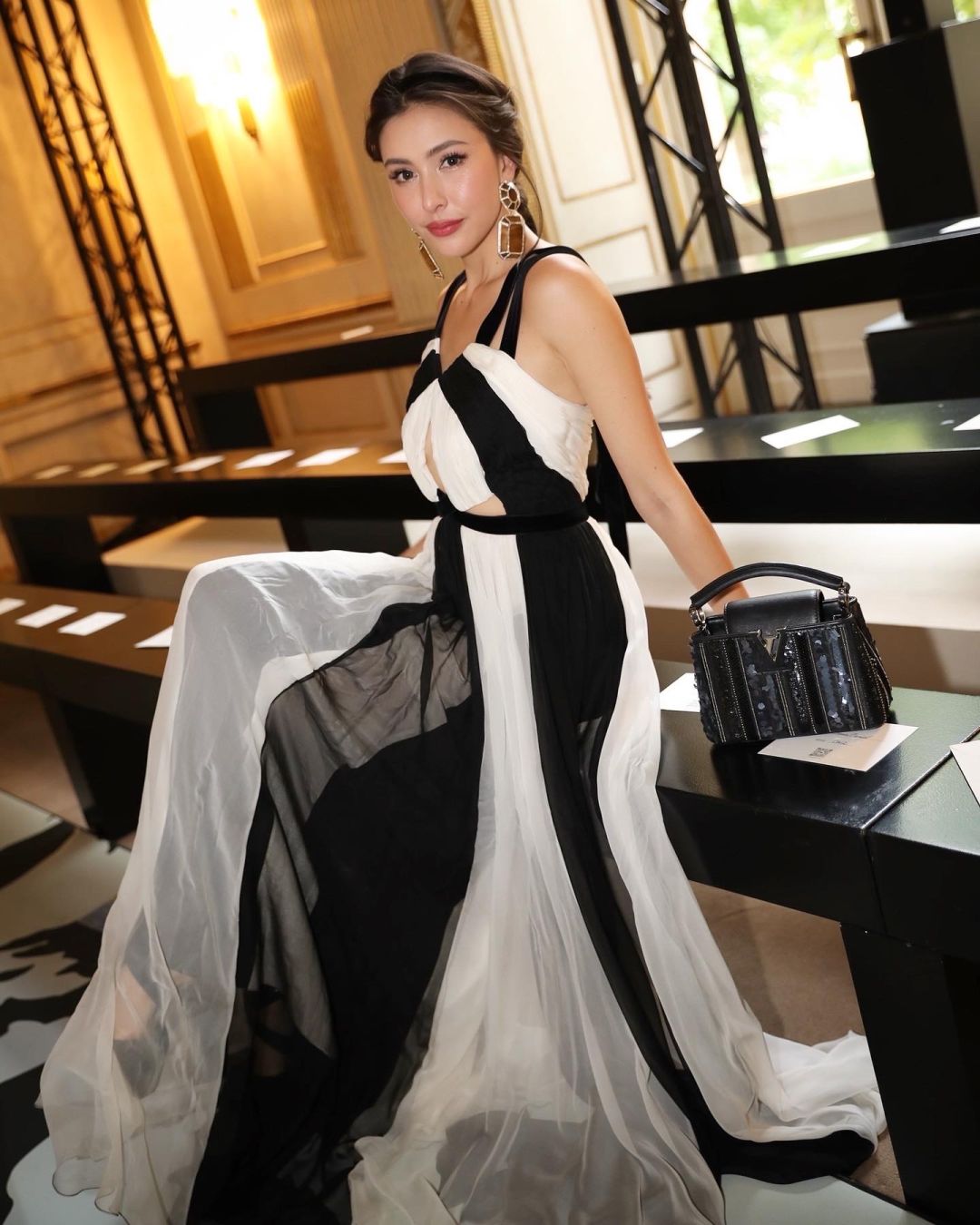 ครึกครื้นมาก สำหรับ Paris Haute Couture Fashion Week Fall/Winter 2023 ที่เหล่าดาราเซเลบริตี้คนดังสายแฟ จากทั่วโลกบินตรงสู่ กรุงปารีส เพื่อเข้าร่วมชมแฟชั่นโชว์โอต์ กูตูร์ จากแบรนด์ดัง ซึ่งนางฟ้าคนสวย “ริต้า – ศรีริต้า เจนเซ่น ณรงค์เดช” ควงสามีหล่อเนี้ยบ “กรณ์ ณรงค์เดช” ไปนั่งชิดขอบรันเวย์ชมแฟชั่นโชว์ The ZUHAIR MURAD Couture Fall-Winter 2023/24 ในฐานะแขกคนพิเศษ ลุควันนี้ ศรีริต้า ปรากฏตัวในชุดเดรสยาวผ้าชีฟองสีขาวดำ Collection 2023 จากแบรนด์ดัง ZUHAIR MURAD เป็นอีกลุคที่สวย แต่แอบแฝงความเซ็กซี่เล็กๆ เพิ่มความชิค กับต่างหูแบรนด์ Schiaparelli และกระเป๋า LOUIS VUITTON รุ่น Capucines คอมพลีตลุคนี้อย่างสวยงามเลอค่า ไม่น่าละรันเวย์ของ โชว์นี้มันดูหวานเป็นพิเศษเพราะคุณสามี กรณ์ นั่งชิด ศรีริต้า แบบหวานฉ่ำ ก็ภรรยาสวยจนละสายตาไม่ได้เลย