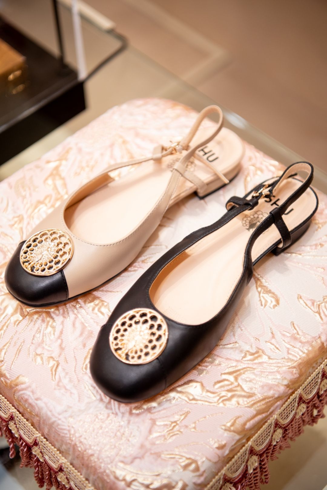 รองเท้าสีทูโทนที่ดูเก๋และสง่างาม โฉบเฉี่ยวด้วยดีไซน์คลาสสิคแบบสายคาดหลังที่โอบล้อมเรียวเท้าให้ดูเพรียวสวย ตกแต่งด้วยตราประทับลายฉลุรูปนกยูง The Manners สีทองแวววาวที่เพิ่มความทรงคุณค่าสไตล์ราชนิกูล ผลิตจากหนังแกะแท้ระดับพรีเมียม พื้นรองเท้านุ่มและยืดหยุ่นด้วยเทคโนโลยีSOFASHU® เอกสิทธิ์ของ SHUที่ช่วยรองรับแรงกระแทกด้วยพื้นรองเท้าที่หนาถึง 5 มม. เหมาะกับทุกการเดินที่ยังเต็มไปด้วยสไตล์ที่ไม่เหมือนใคร